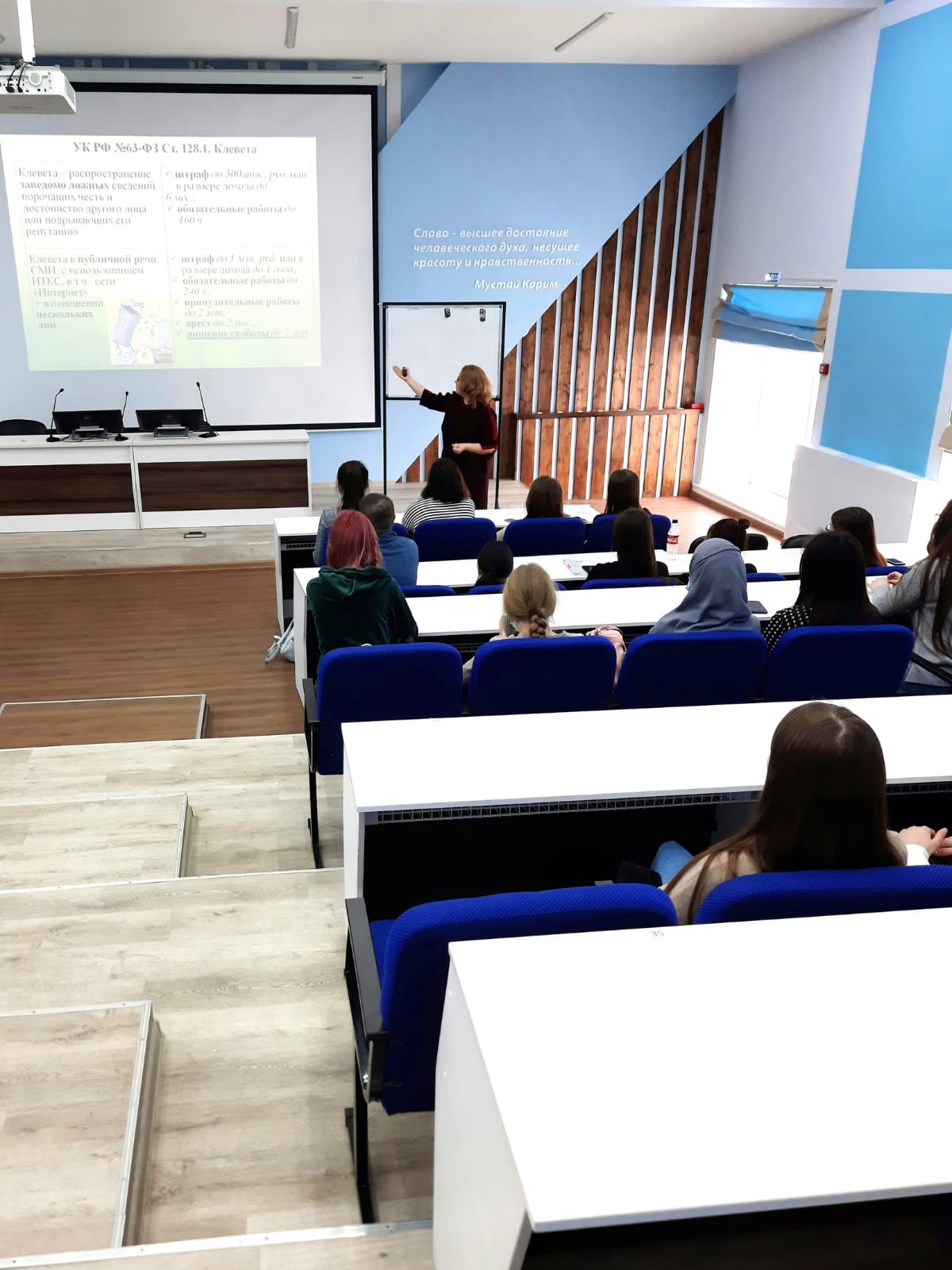 В марте 2021 г. в БГПУ им. М.Акмуллы состоялся мастер-класс «Реальное и виртуальное общение: аспекты безопасности», который провели кандидаты филологических наук, доценты кафедры общего языкознания Ю.С.Фомина и Е.Е.Хазимуллина. Студенты Института филологического образования и межкультурных коммуникаций ознакомились с особенностями вузовской культуры поведения, рассмотрели риски реальной и виртуальной коммуникации, принципы речевой безопасности, правовые нормы. Основное внимание было уделено формированию понимания сложности и конфликтности современного межкультурного общения, а также выработке навыков различения фактуальной, оценочной информации, утверждений и мнений.