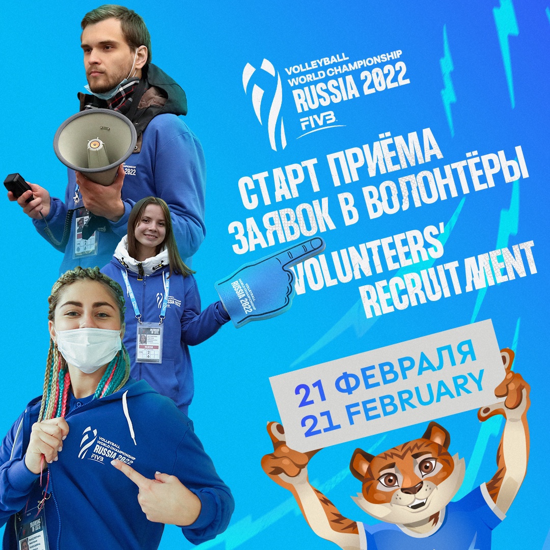 21 февраля 2022 года будет дан старт Волонтерской программы Чемпионата мира по волейболу FIVB 2022, который пройдет с 26 августа по 11 сентября в 10 городах России.