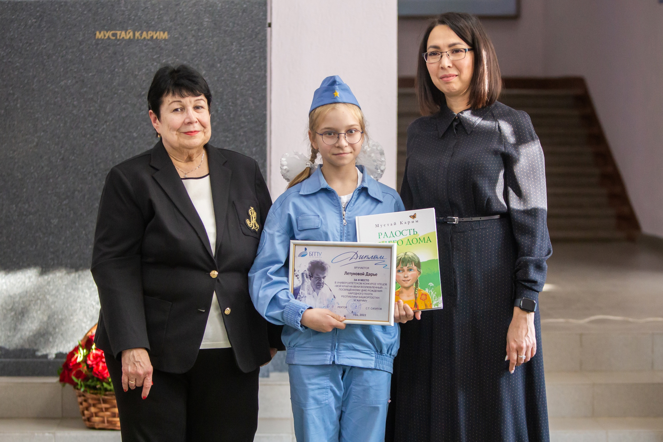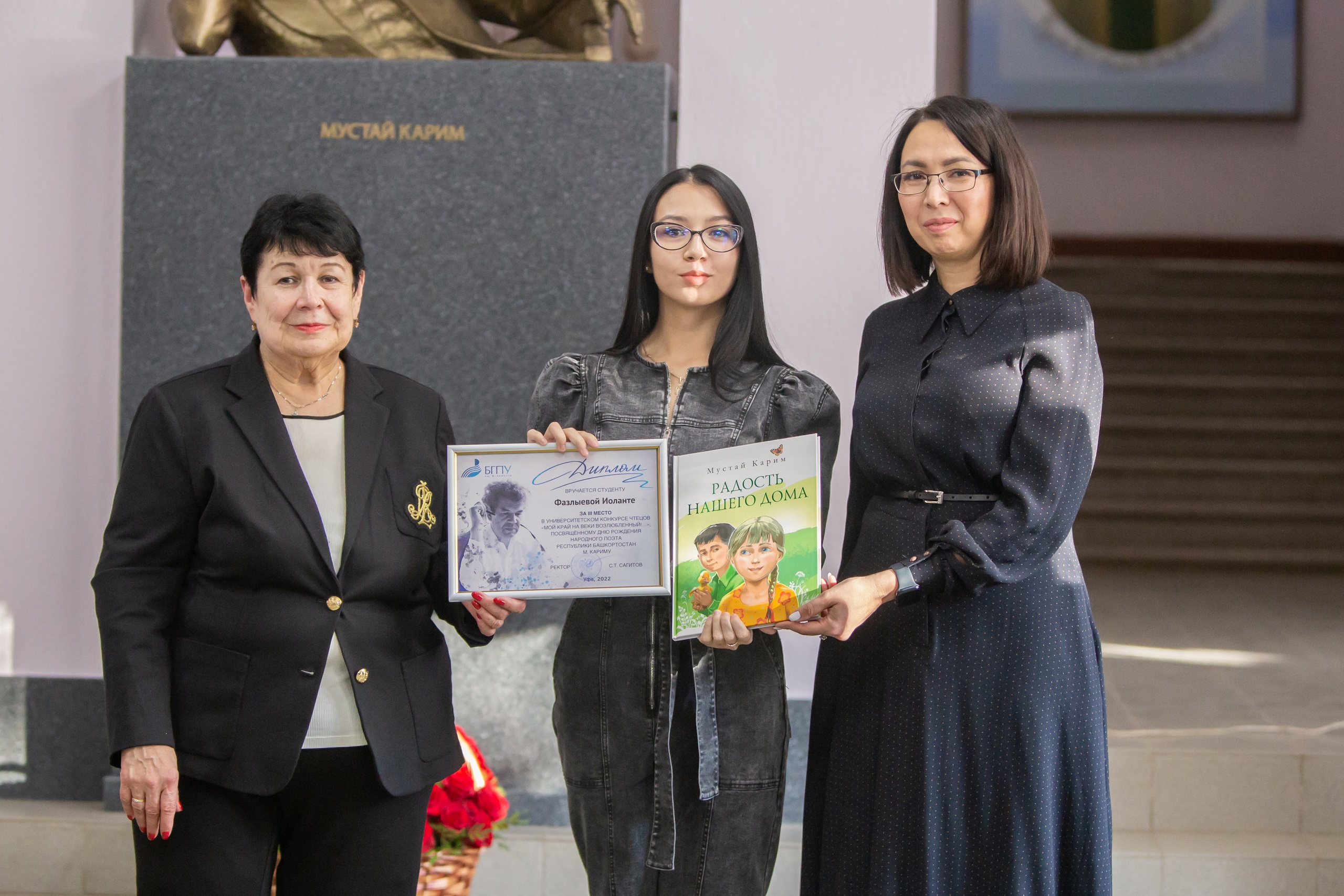 Почётные гости наградили лауреатов конкурса чтецов произведений Мустая Карима «Мой край, возлюбленный навеки!..», организованного Департаментом по воспитательной работе и молодежной политике БГПУ им. М.Акмуллы ко дню рождения народного поэта. Участниками стали студенты вузов и ссузов региона, а также школьники. Всего в конкурсе приняло участие более 70 человек из разных уголков Республики Башкортостан. Среди участников – студенты Акмуллинского университета, колледжа права и социального обеспечения Башкирского государственного университета, Белорецкого педагогического колледжа, учащиеся школ, гимназии и лицеев Уфы, Ишимбая, Чекмагушевского, Салаватского районов.