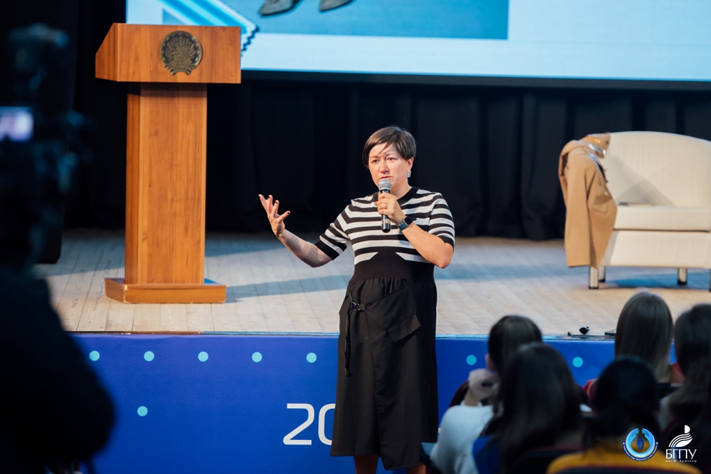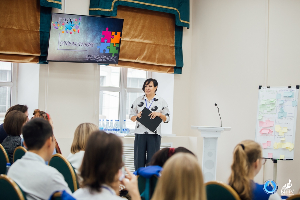 Депутат городского Совета г. Уфы, председатель студотрядов Башкортостана и многодетная мама Ирина Сухарева во время лекции «Правила выживания в школе» дала советы по достижению целей и управлению временем.