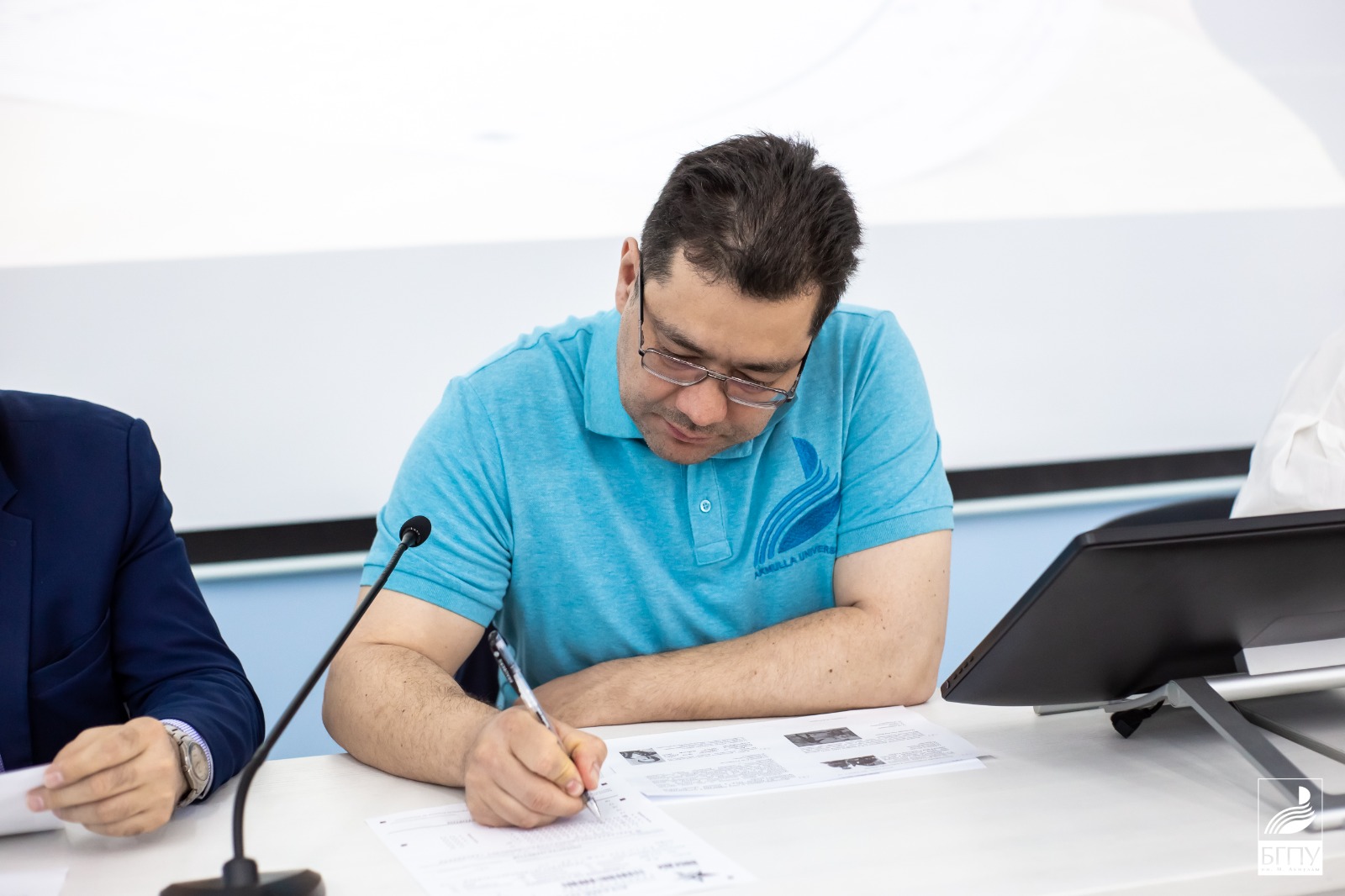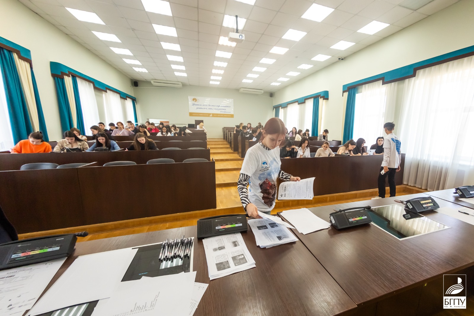 Более 150 студентов БГПУ имени Акмуллы во главе с ректором университета Салаватом Сагитовым разместились на двух площадках 3-го корпуса, чтобы проверить свои знания по истории родного Отечества. «Знать, чтобы помнить» - под таким девизом проходит Международная акция «Диктант Победы». Сегодня, 27 апреля, участников акции приветствовали даже космонавты МКС, пожелавшие успешного написания диктанта.