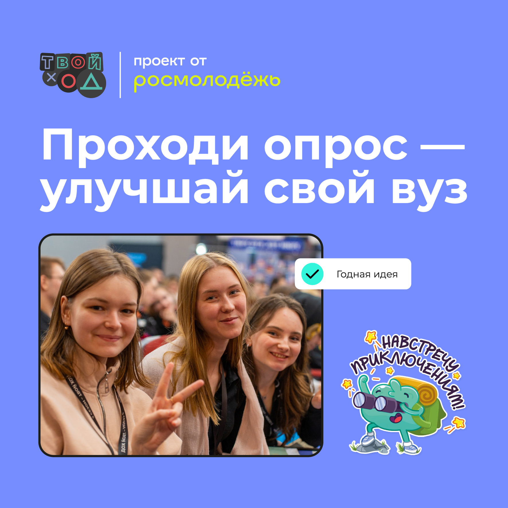 Всероссийский студенческий проект «Твой Ход» приглашает студентов БГПУ им. М. Акмуллы принять участие в опросе «Индекс эффективности воспитательной активности вузов», целью которого является улучшение воспитательной работы учебного заведения. Опрос эффективности запустился 10 мая в личном кабинете участников на платформе проекта «Твой Ход».
