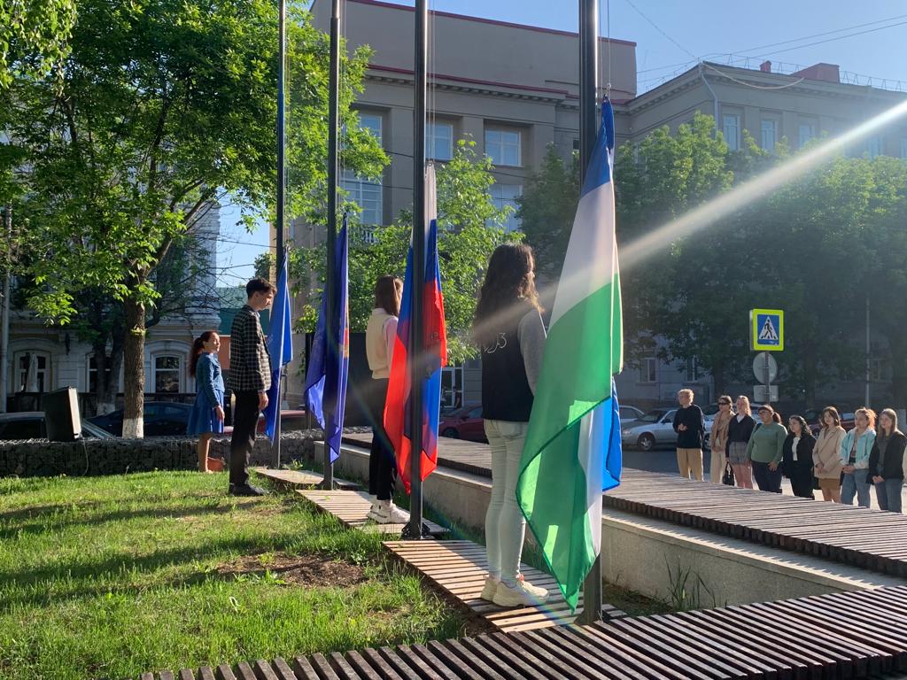 22 мая в Башкирском государственном педагогическом университете состоялась торжественная церемония поднятия государственного флага Российской Федерации и флагов Республики Башкортостан, Министерства просвещения России и Акмуллинского университета. В мероприятии приняли участие студенты и преподаватели Института физики, математики, цифровых и нанотехнологий вуза.