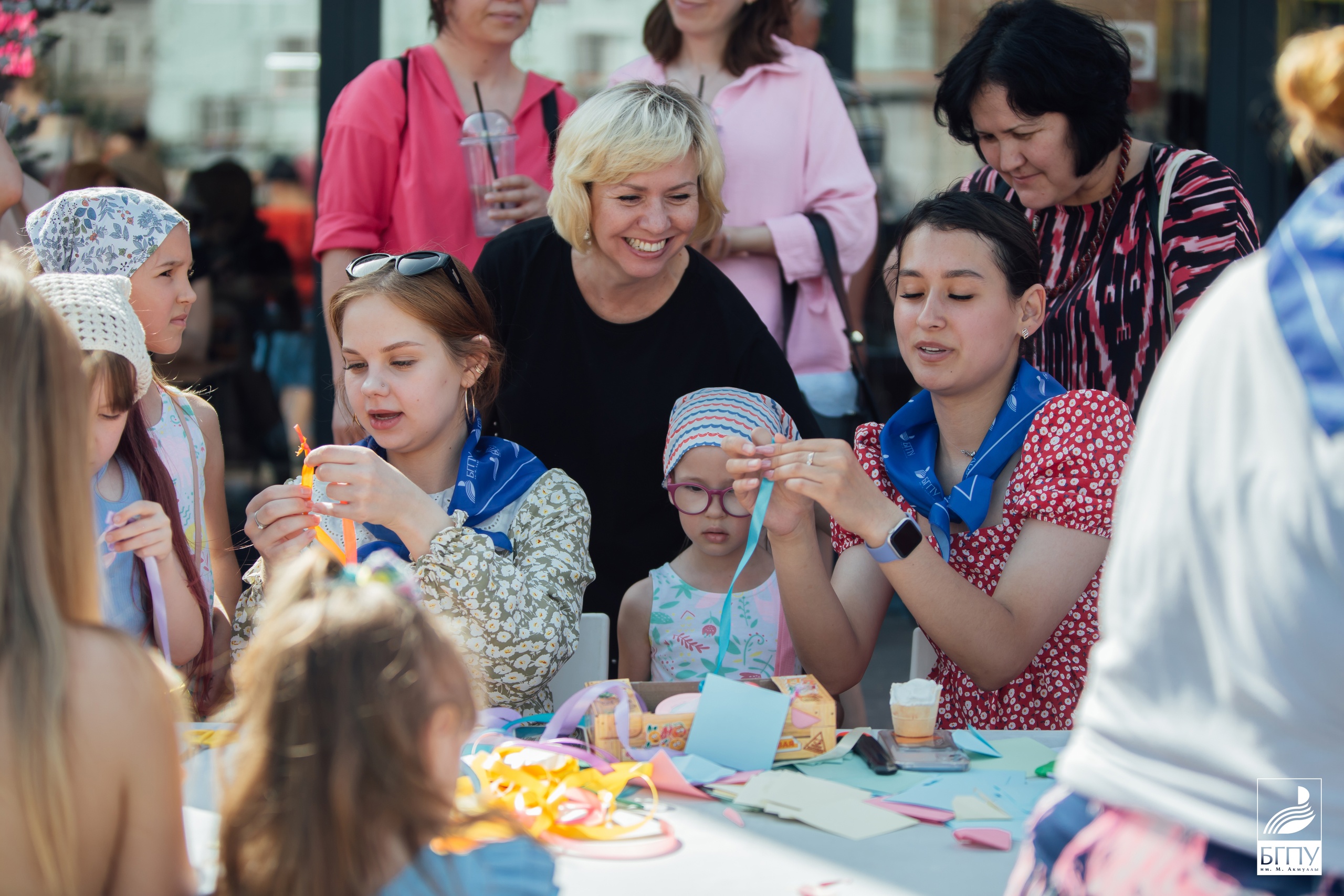 Обучающиеся художественно-графического факультета украсили лица ребят ярким аквагримом. Будущие тренеры и учителя физкультуры устроили для детей веселые и подвижные игры. Студенты Института педагогики организовали для детей настольные игры и  провели мастер-классы по изготовлению поделок из лент и других материалов.