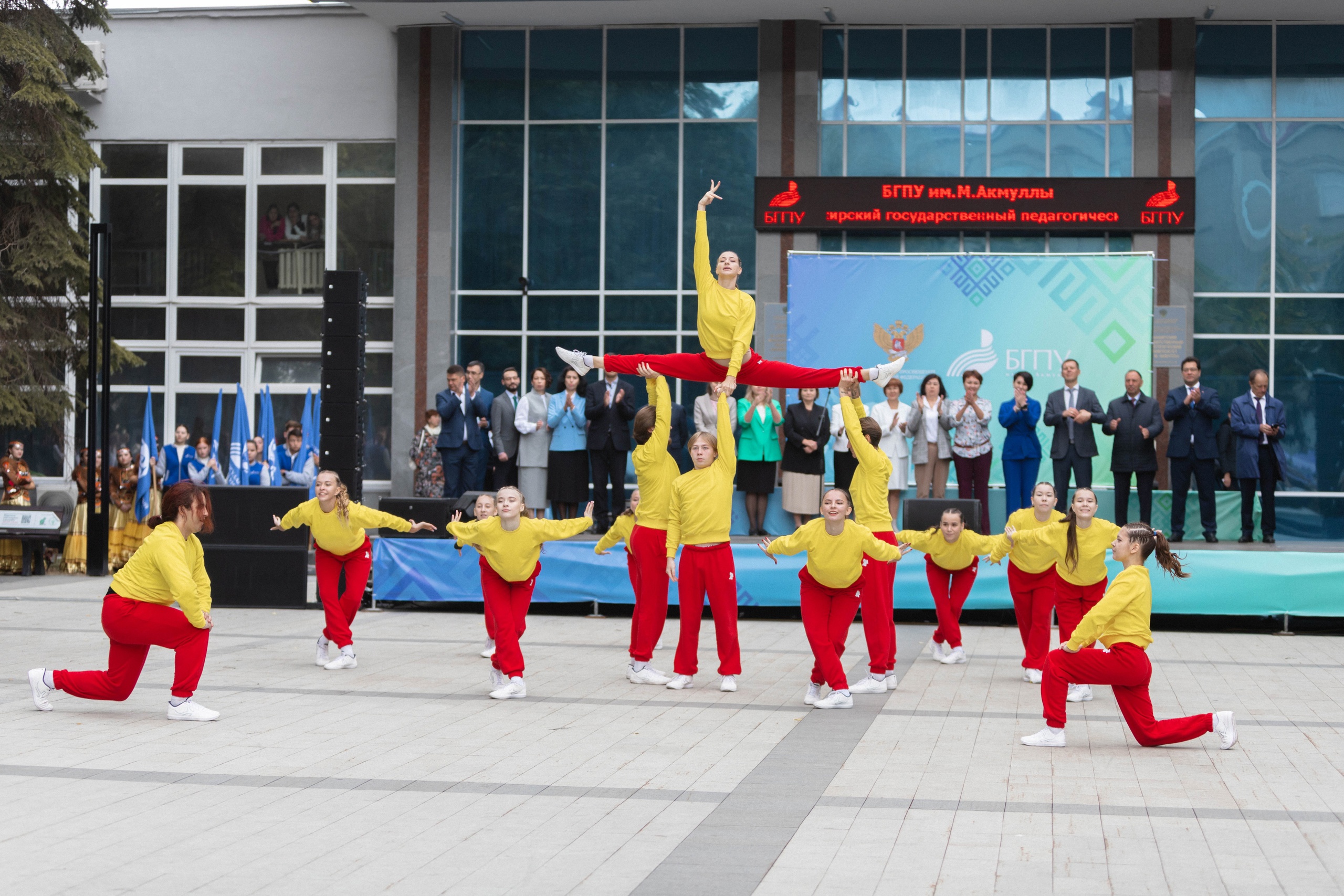 Праздничное мероприятие украсили творческие номера коллективов Акмуллинского университета. На празднике выступили ансамбли «Кружева», «Грация», спортивно-аэробическое шоу «Страдл», «Вокальная служба Акмуллинского». Хор «Кантанте» БГПУ имени Акмуллы традиционно исполнил гимн студенчества «Гаудеамус».