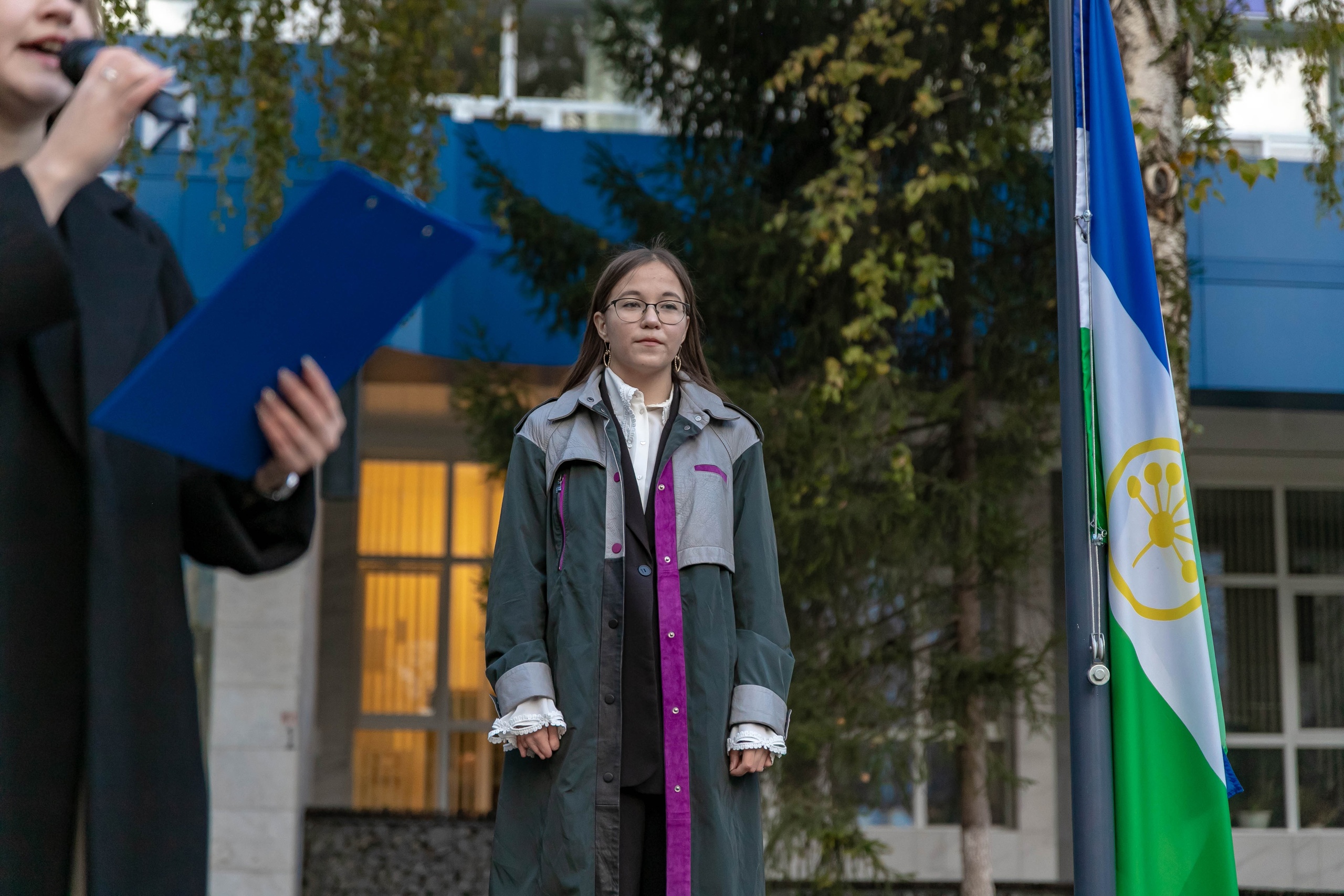 В этот день почетное право поднять государственный флаг Российской Федерации, флаги Республики Башкортостан, Министерства просвещения России и Акмуллинского университета было предоставлено стипендиатам Правительства РФ Зарине Мирабдуллаевой и Милене Рахимкуловой, а также Виолетте Ивановой и Адель Сайфуллиной – победителям открытой премии имени С.Т. Аксакова 2023 года.