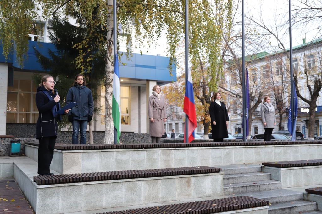 16 октября в Акмуллинском университете состоялась традиционная церемония поднятия флагов. В ней приняли участие студенты и преподаватели Института исторического, правового и социально-гуманитарного образования.