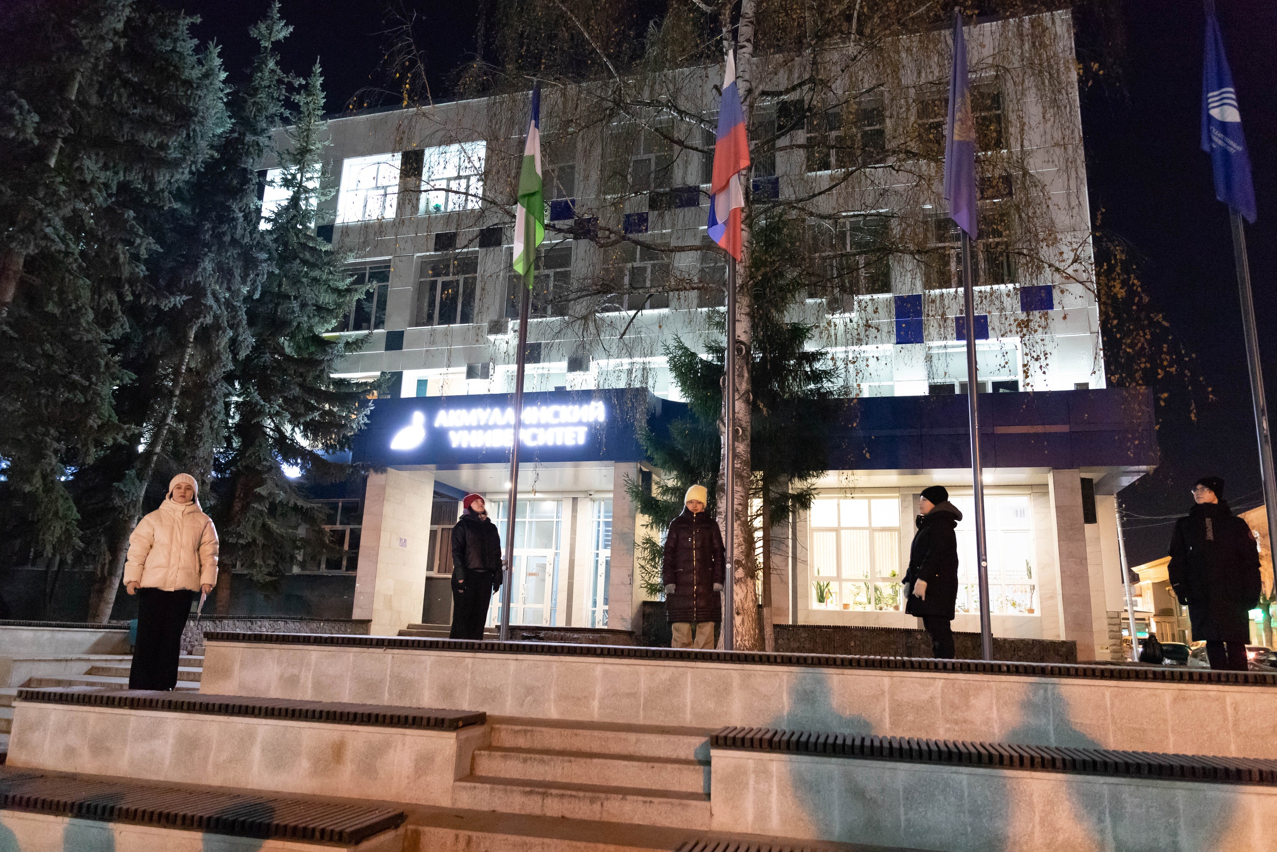 Понедельник 20 ноября в Акмуллинском университете по традиции начался с торжественной церемонии поднятия флагов.