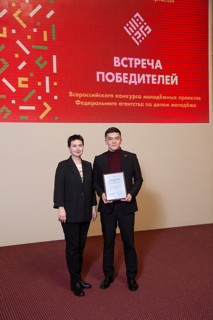 На встрече победителей Всероссийского конкурса молодежных проектов студенты Акмуллинского университета получили дипломы за успешное представление Республики Башкортостан на Всероссийском конкурсе Федерального агентства по делам молодежи.  Председатель Государственного комитета РБ по молодежной политики Яна Гайдук наградила:
