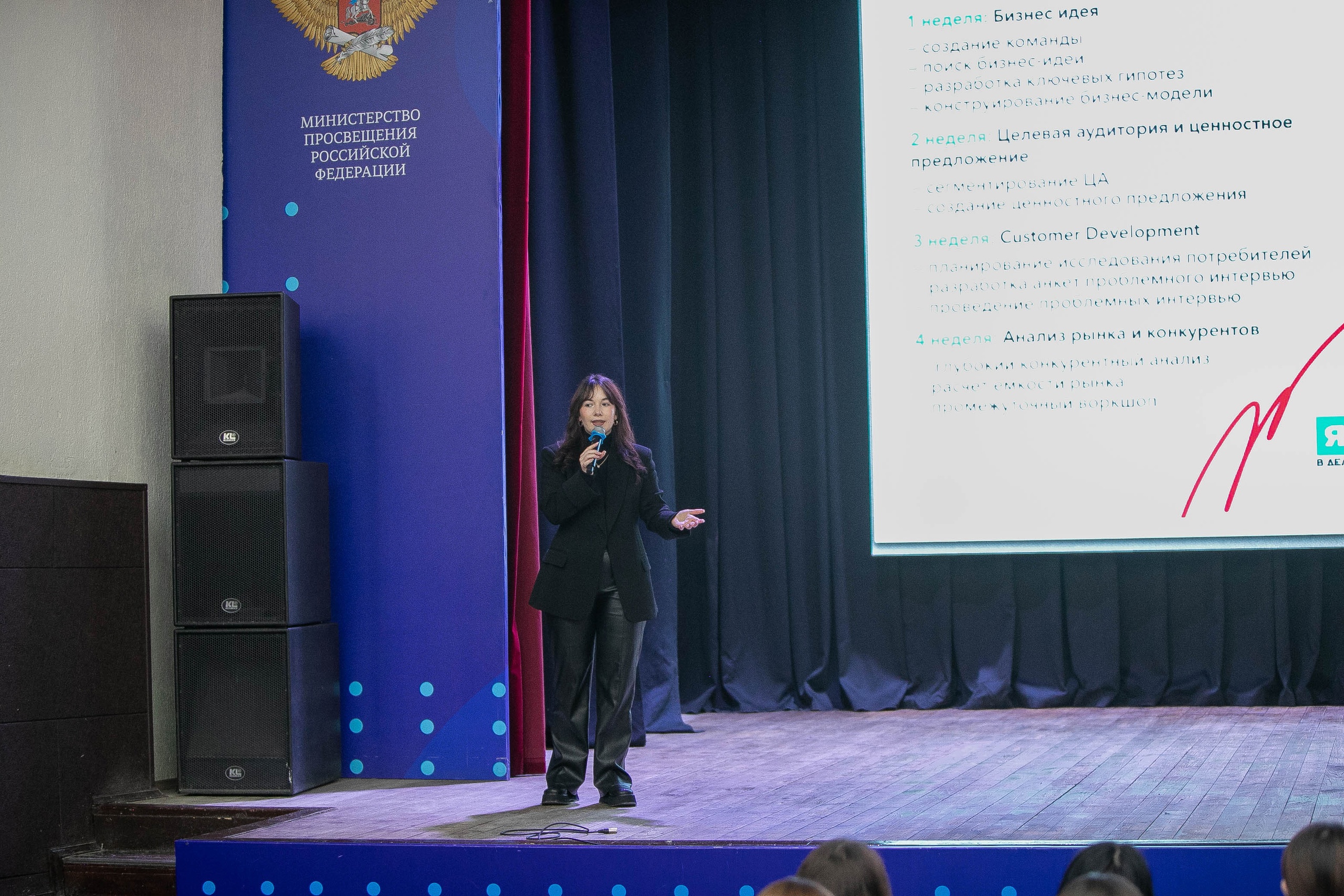 Следующим спикером была Вероника Васина, региональный координатор программы развития молодежного предпринимательства. Она рассказала студентам об идее создания проекта и проведении обучающей предпринимательской игры в вузах, а также о 9-недельных обучающих курсах, где студенты создают и запускают свои бизнес-проекты. После этого спикер предложила участникам принять участие в деловой игре, в которой студентам Акмуллинского университета нужно было представить себя в роли предпринимателя и определить концепцию своего будущего бизнеса.