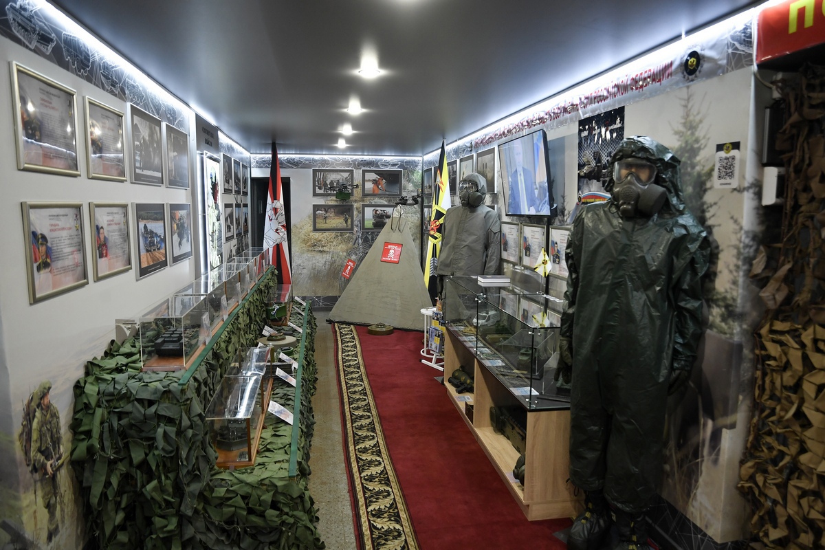Передвижная выставка содержит тематические вагоны, посвященные мужеству и героизму российских военных, современному вооружению и развитию юнармейского движения.