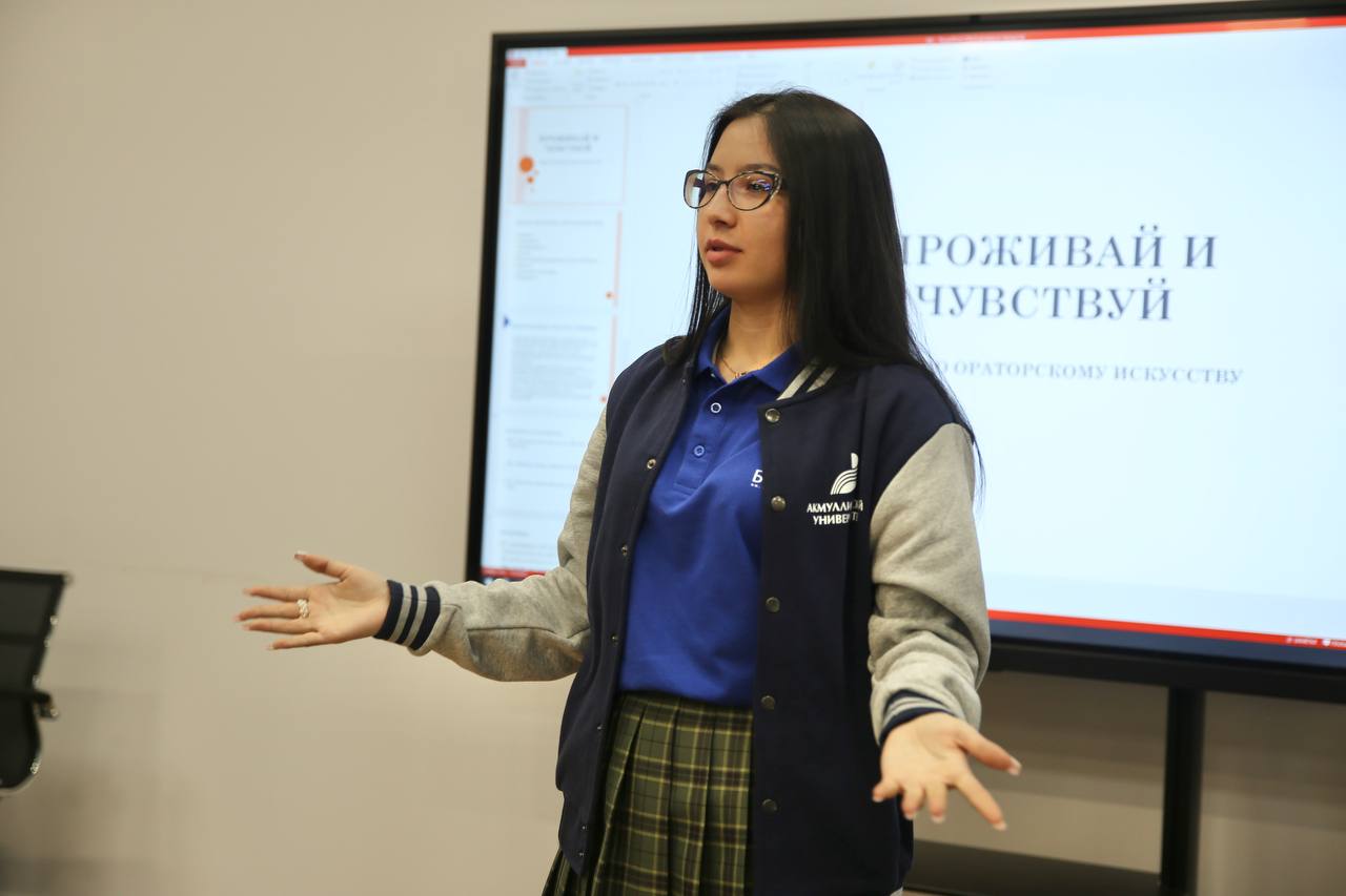 «Поскольку я обучаюсь в Институте филологического образования, моя направление — это работа с речью, с языком и работа с людьми. Поэтому я проводила мастер-класс именно по ораторскому искусству. Я очень горжусь тем, что мне оказали такую большую честь – быть представителем Акмулинского университета на мероприятии всероссийского масштаба, и я очень благодарна нашему вузу за такую возможность», – рассказала Иоланта.