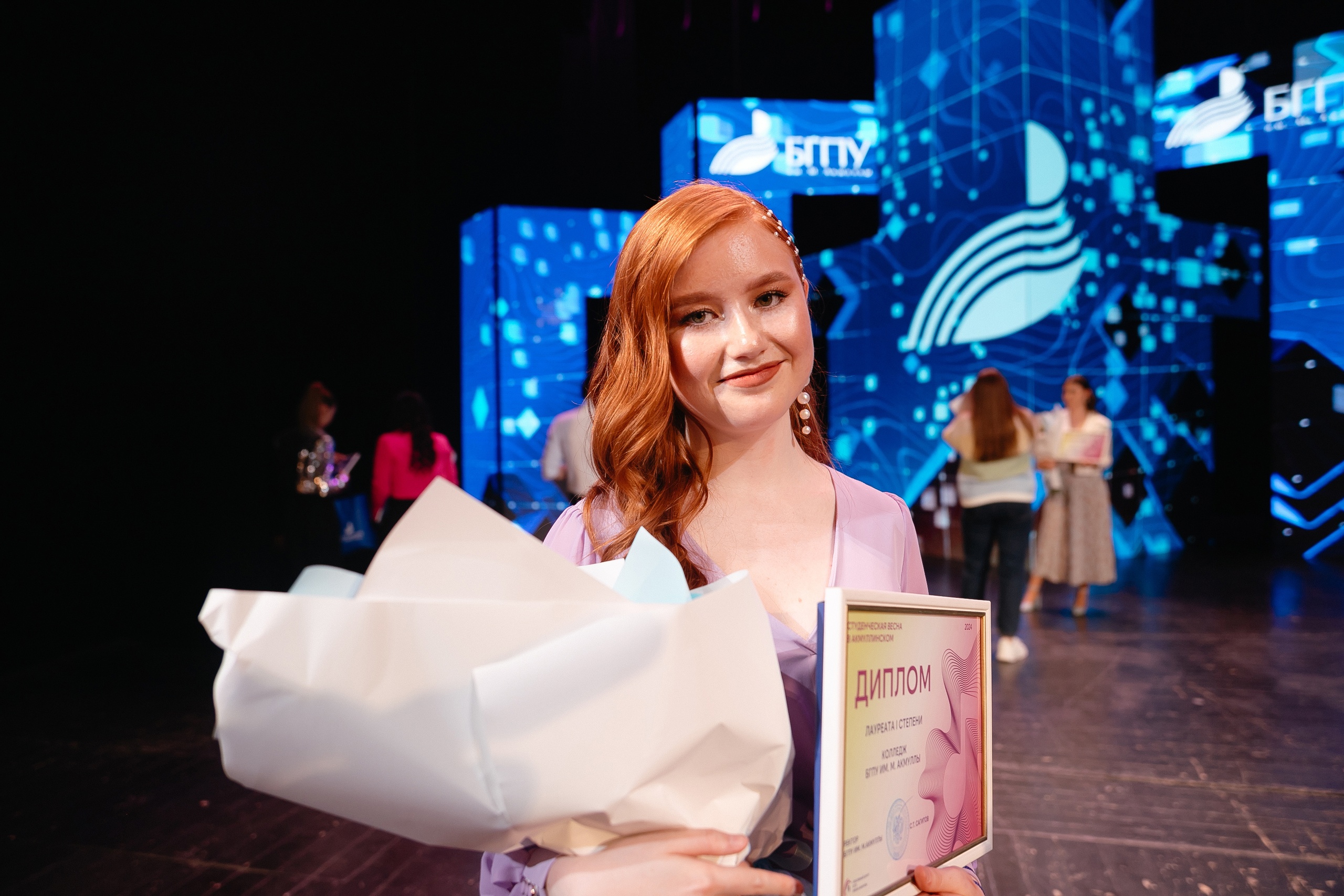 По итогам студенческой весны в Акмуллинском университете лучшим руководителем креативного центра стала студентка Института педагогики Карина Хайрутдинова.