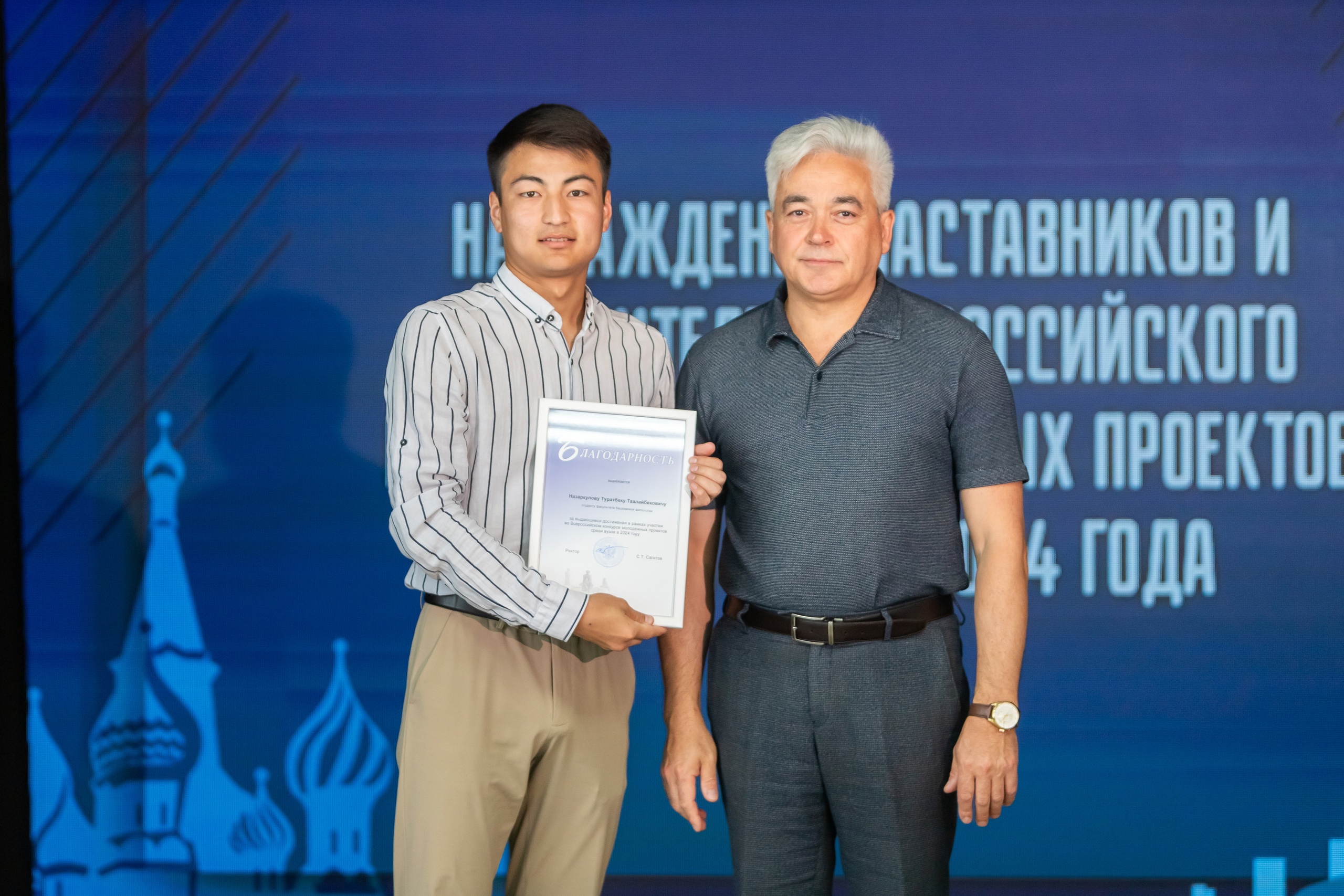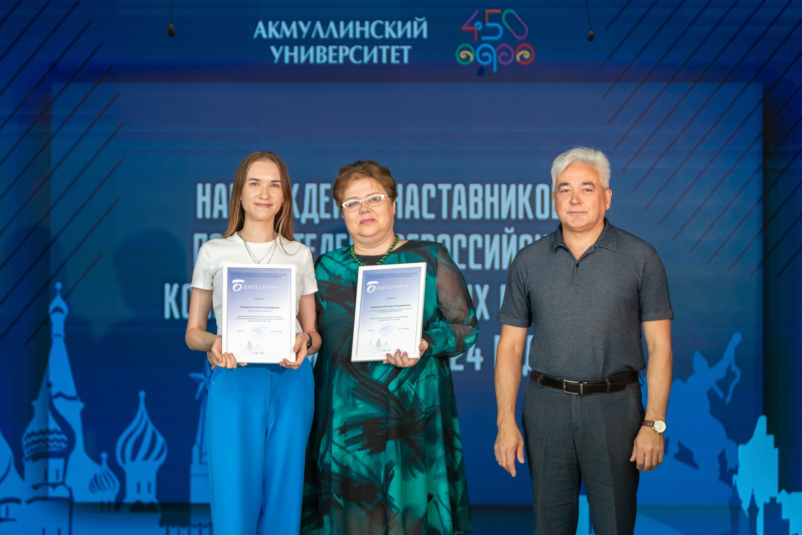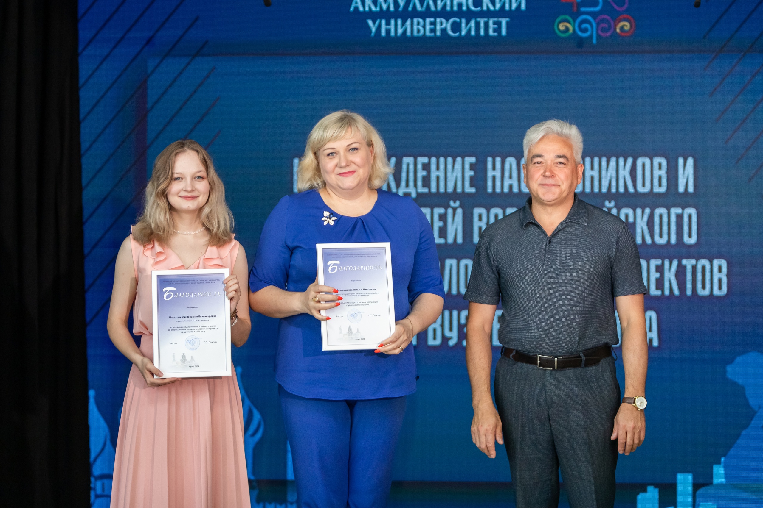 В 2024 году 6 проектов, разработанных студентами БГПУ имени М. Акмуллы, стали победителями Всероссийского конкурса молодежных проектов среди вузов и выиграли гранты на общую сумму 2 миллиона  850 тысяч рублей. Студенты-авторы этих проектов и их наставники были награждены благодарственными письмами Акмуллинского университета. Их вручил первый проректор вуза по стратегическому развитию Алмаз Мустаев.
