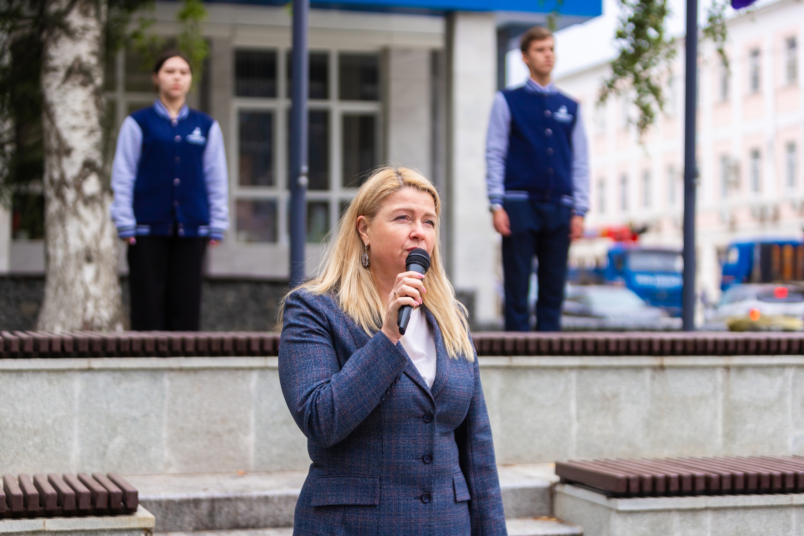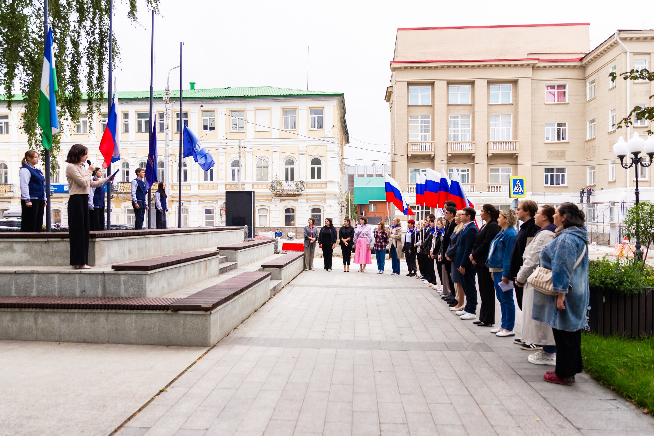 Под торжественную музыку над площадью перед вузом поднялись государственный флаг Российской Федерации, флаги Республики Башкортостан, Министерства просвещения Российской Федерации и Акмуллинского университета.