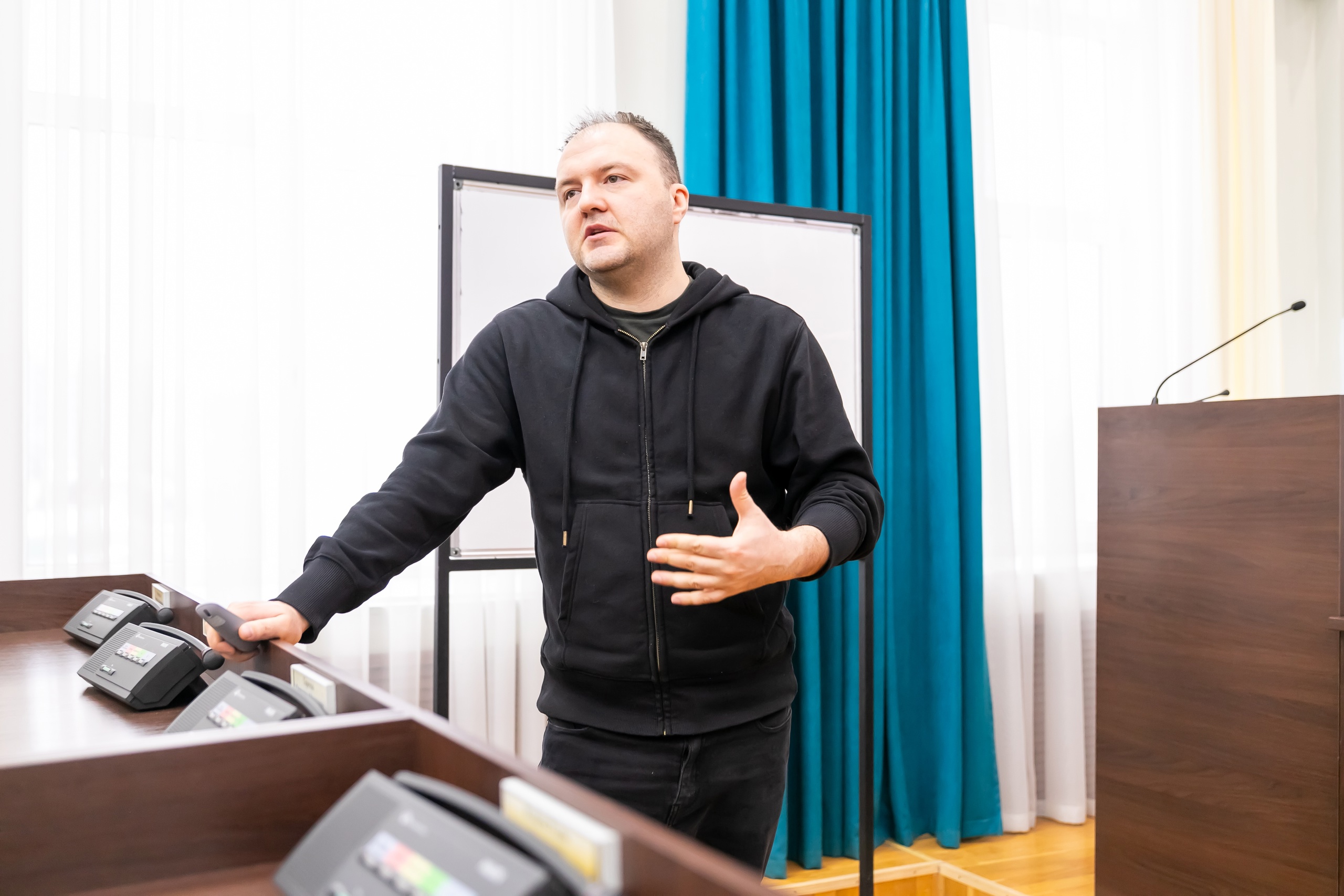 На встречу со студентами пришли Алексей Стецюк, председатель ТРООРГО «Активный гражданин» и Николай Каташов, режиссёр фильмов проекта «Истории забытых деревень».