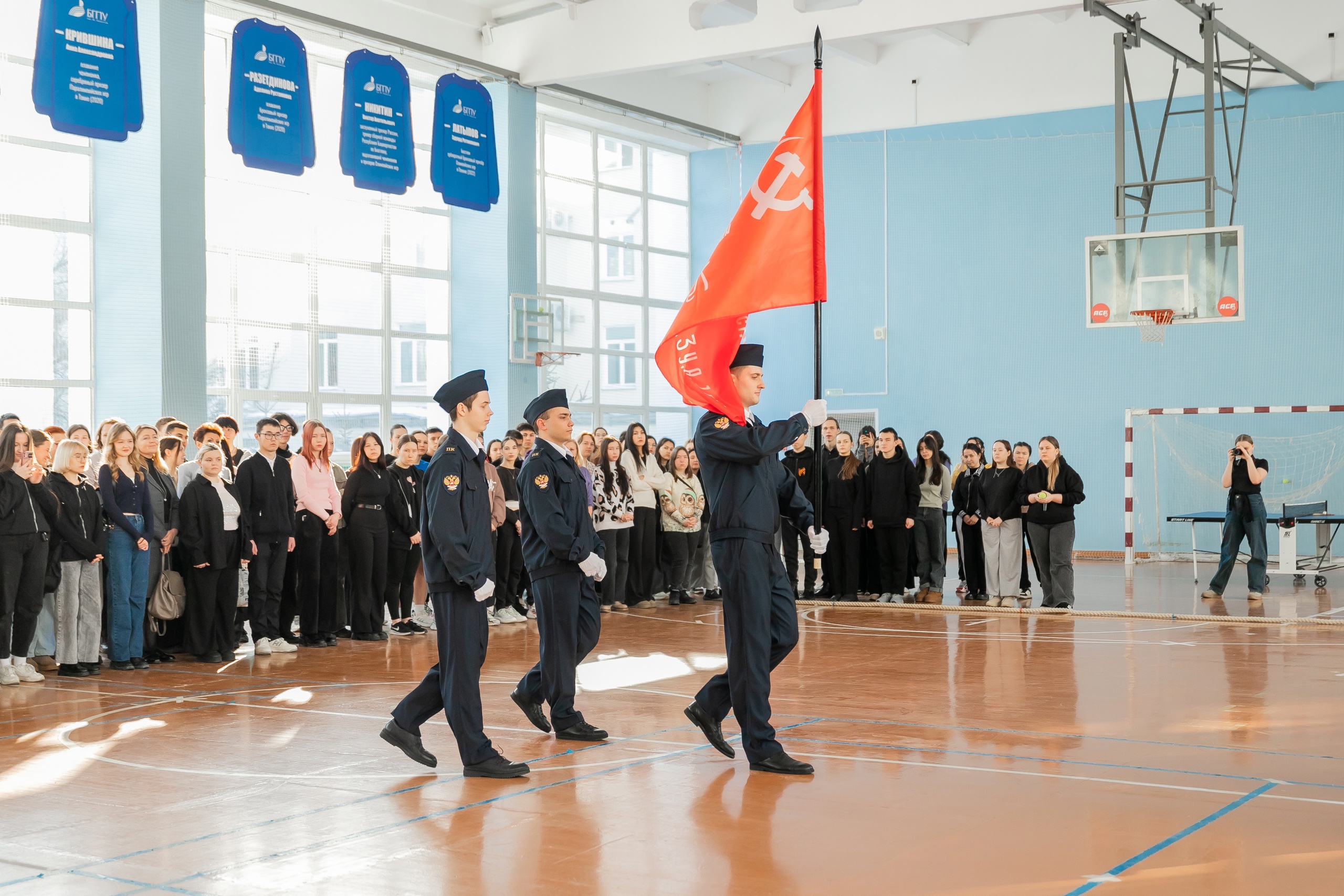 В торжественной обстановке состоялся вынос копии Знамени Победы – символа мужества и стойкости. Участники студенческого клуба военно-спортивной подготовки и патриотического воспитания «Яугир-Воин» передали знамя директору Институту физической культуры и здоровья человека Николаю Черепанову. «Эстафета Знамени Победы» пройдет на всех факультетах и в институтах Акмуллинского университета. Каждое учебное подразделение станет хранителем копии Знамени на протяжении одной недели. Завершится эстафета 5 мая, когда копия Знамени Победы вместе с государственными флагами будет поднята на площади перед вузом.