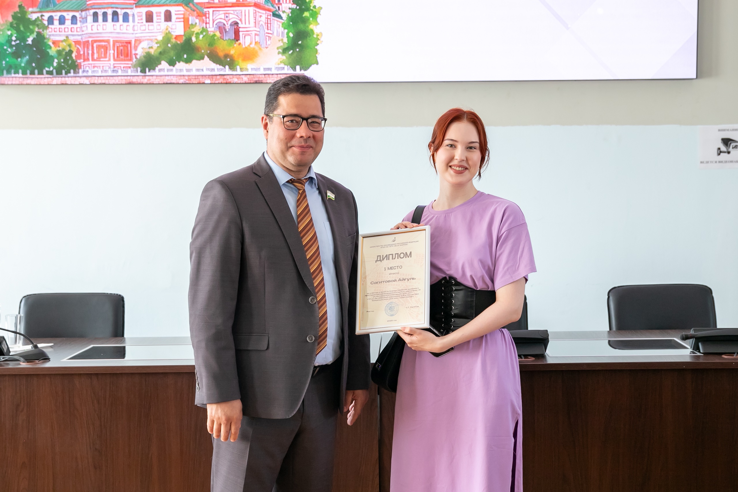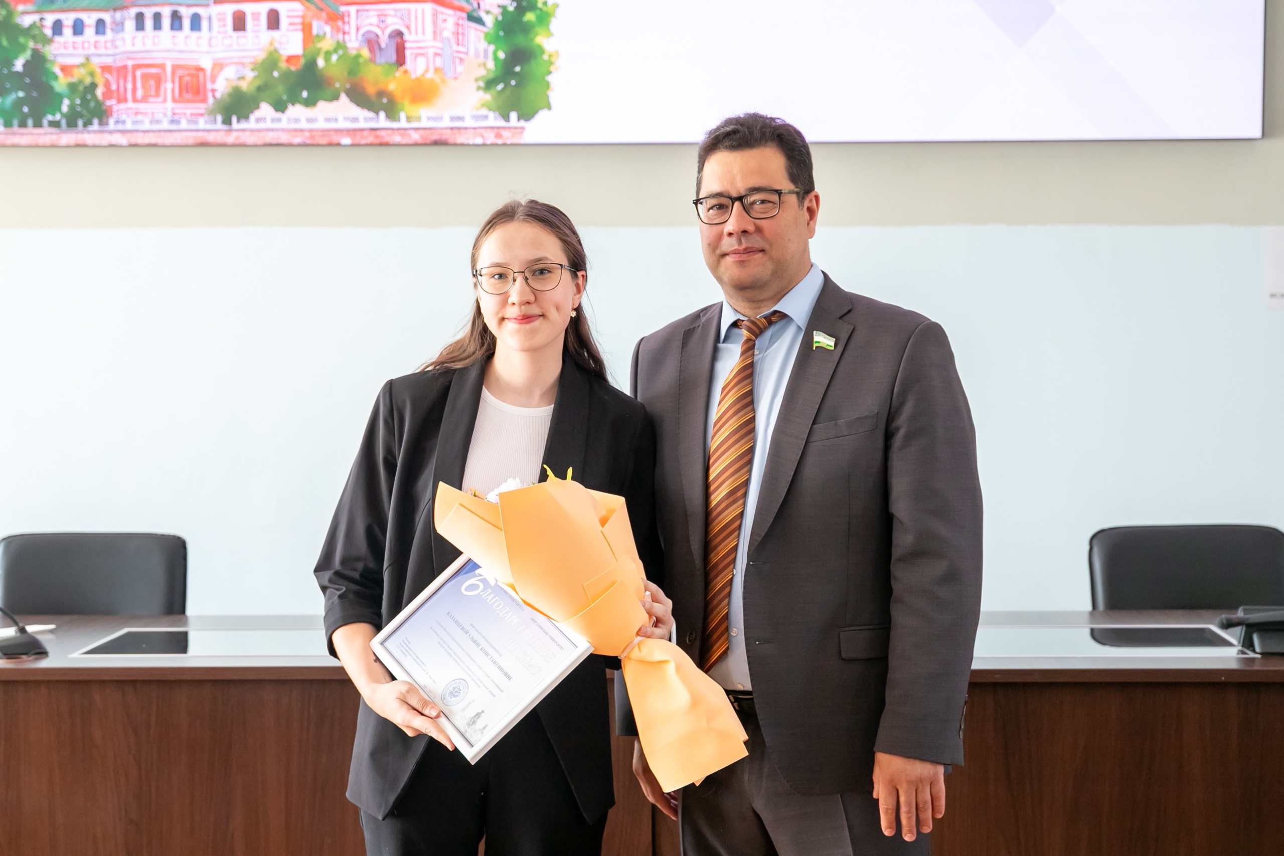 Почетные грамоты Акмуллинского университета были вручены магистранту ИФКЗЧ Аделие Еникеевой и студенту ИФКЗЧ Виктору Заболоцкому.