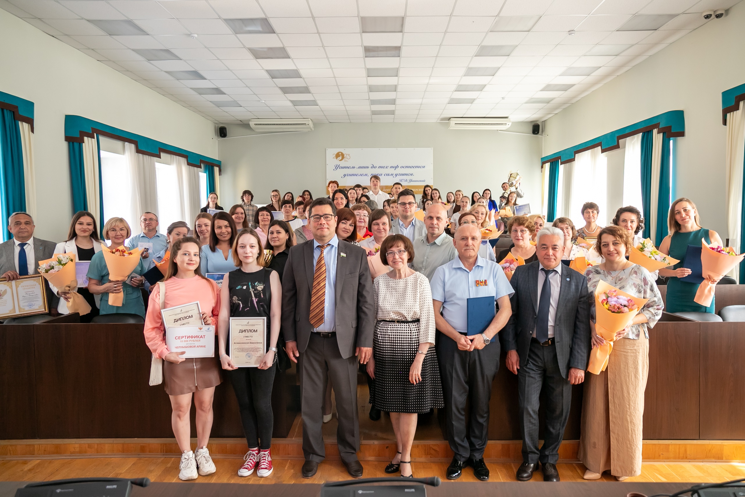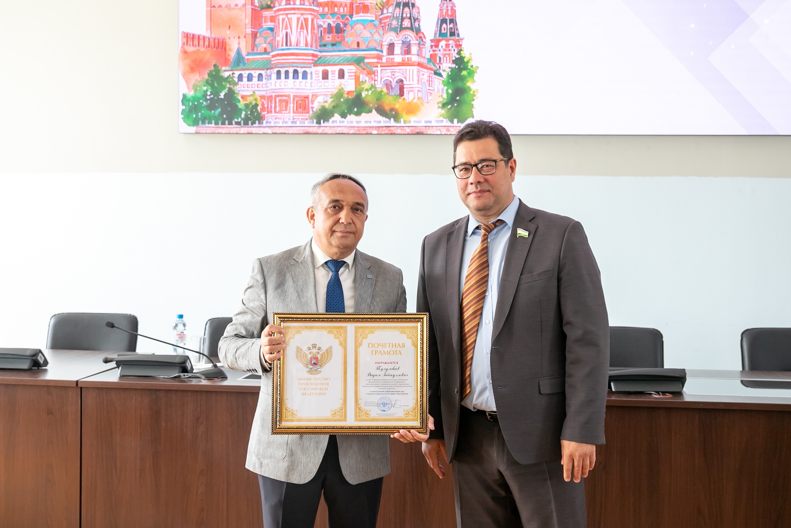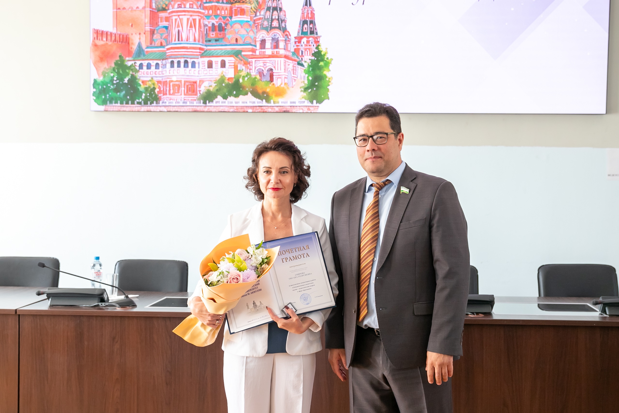 Сотрудникам и преподавателям вуза были вручены почетные грамоты и звания Акмуллинского университета и Министерства просвещения РФ.