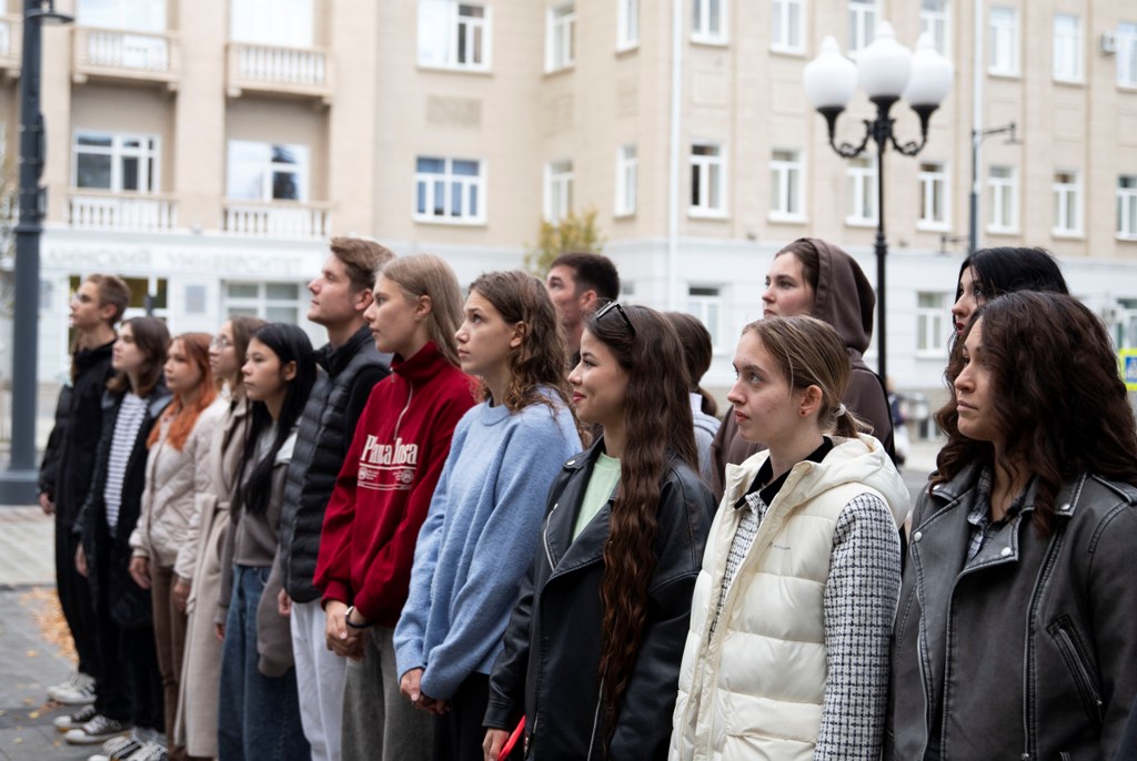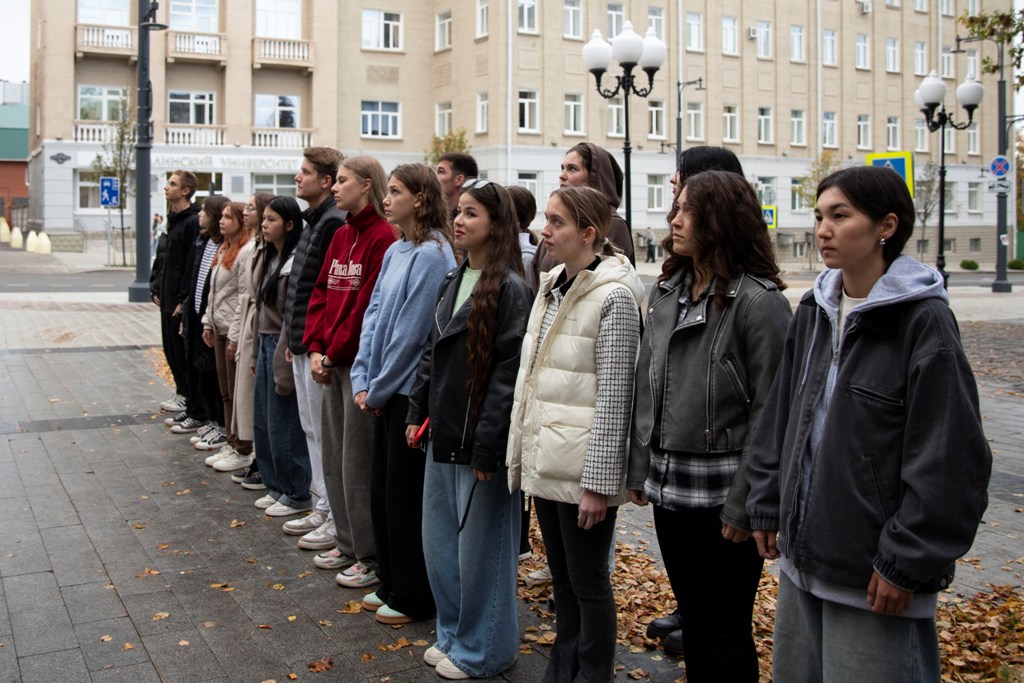 Почетное право поднять флаги на площади перед вузом получили студенты Института физической культуры и здоровья человека, имеющие особые достижения в спортивной, общественной и учебной деятельности: