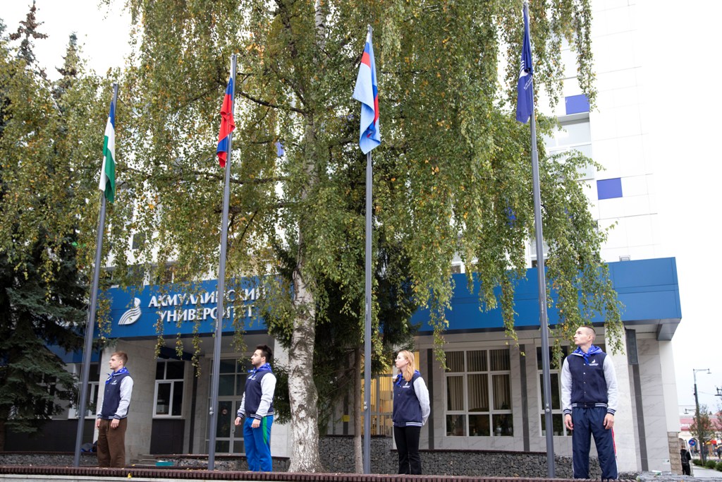 22 сентября в Акмуллинском университете состоялась традиционная еженедельной торжественной церемонии поднятия государственных флагов Российской Федерации, Республики Башкортостан, флагов Министерства просвещения России и БГПУ им. М. Акмуллы.