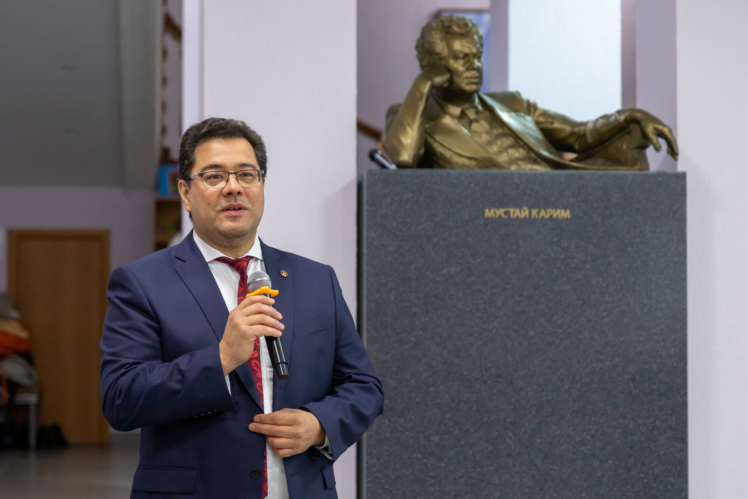 «Сегодня особенный день и для меня лично, и для Акмуллинского университета. 20 октября родился Мустай агай, поэт, писатель, драматург, первый почётный профессор Акмуллинского университета Мустай Карим. «После культа Матери я преклоняюсь только перед культом, имя которому – Учитель» - это слова Мустая агая находят отклик у многих и многих людей. Он сам был образованию  педагог, и каждое его произведение — это живое отражение национальной души, наполненное мудростью, назиданием, истинным провидением. В Акмуллинском университете есть его именная аудитория, и в ней живет его дух, философия,  его доброта и мудрость, проходят большие мероприятия нашего вуза», - сказал, открывая торжественное мероприятие ректор БГПУ имени М. Акмуллы, депутат Государственного Собрания – Курултая Башкортостана Салават Сагитов.