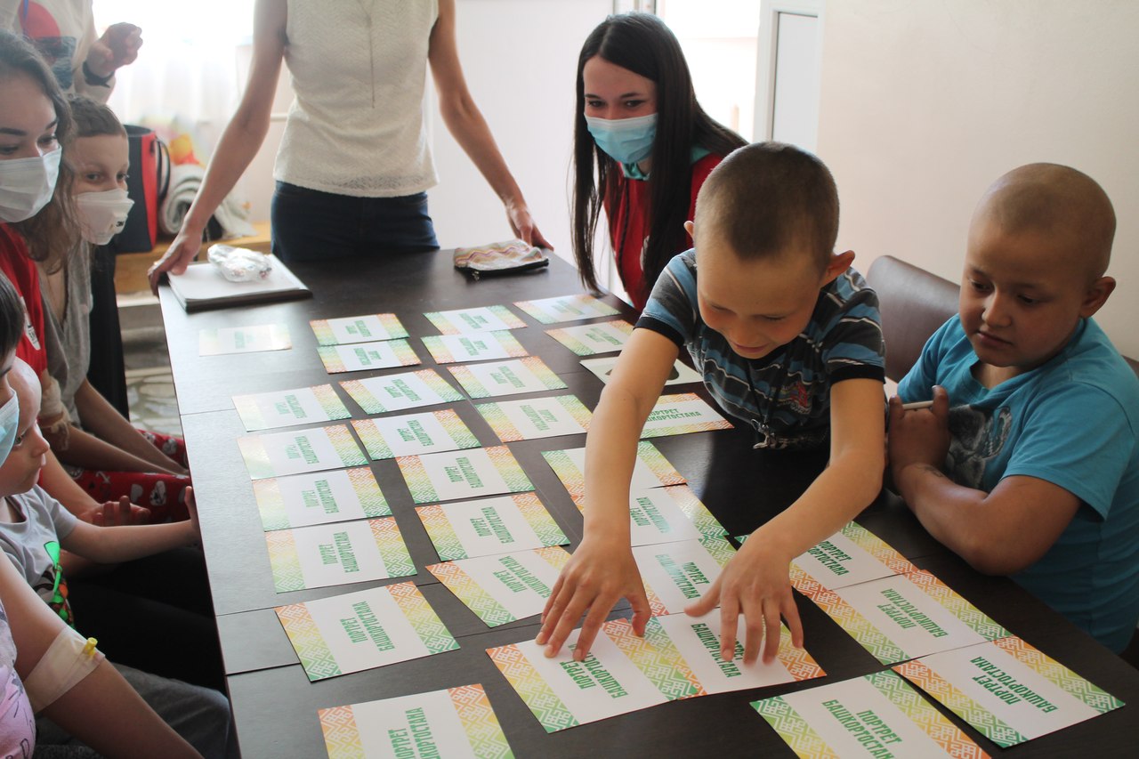 В  рамках реализации проекта "Быть нужным - просто" в гематологическом отделении Республиканской детской клинической больницы серебряный волонтер и руководитель волонтерского отряда института педагогики "Палитра" Екатерина Савельева вместе с добровольцами БГПУ им. М. Акмуллы провели настольную игру "Лото о Родине". Совсем недавно вся страна отмечала главный праздник - День Победы, потому игра была встречена ребятами с особым трепетом и волнением.