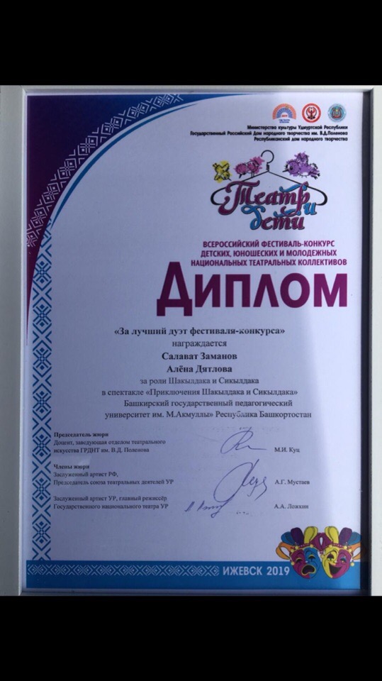- диплом в номинации «За лучший дуэт» (А. Дятлова, С. Заманов);