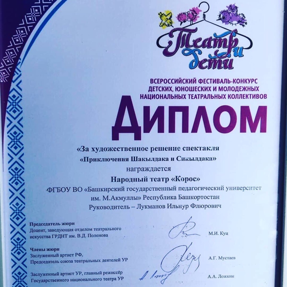 - диплом от ООО «Союз театральных деятелей РФ» СТД Удмуртской Республики режиссеру спектакля и руководителю коллектива И.Ф. Лукманову в номинации «За режиссерское решение спектакля».