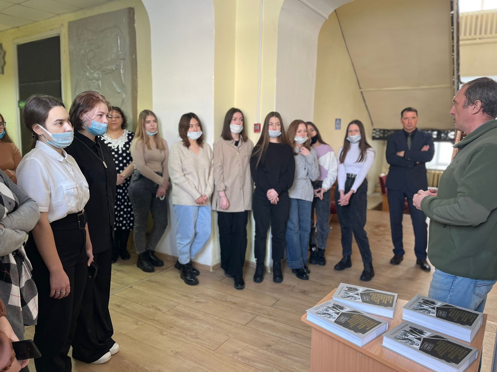 Собравшимся студентам и сотрудникам университета руководитель РООД «Поисковое движение России» в Республике Башкортостан Владимир Волков рассказал об истории возникновения выставки и ее содержании, а также представил книжные тома с более полной и объемной информацией, рассказывающей об ужасах войны.