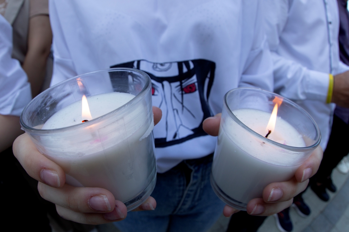 В память обо всех жертвах терроризма участники акции зажгли свечи и возложили цветы.