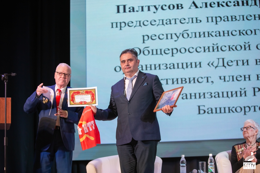Трагическим событиям холокоста было посвящено выступление ветерана-активиста Александра Михайловича Палтусова. Он передал вузу Почетную грамоту Общероссийской общественной организации «Дети войны», флаг организации и памятную фотографию.