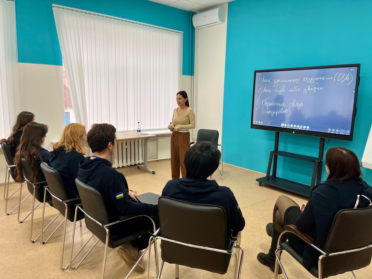 Алина Назарова поделилась с ребятами мастерством публичного выступления. Участники изучили тонкости и секреты убедительного выступления, освоили алгоритмы самопрезентаций на каждый день и для публичных выступлений, а также как правильно управлять вниманием аудитории и грамотно подавать материал.