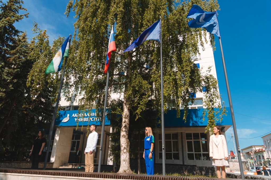 Почётное право поднять Государственный флаг Российской Федерации, флаги Республики Башкортостан, Министерства просвещения Российской Федерации и Акмуллинского университета было предоставлено выпускникам вуза 2024 года, которые добились высоких результатов в научной, спортивной, культурной и общественной жизни Акмуллинского университета. Флаги на площади перед университетом подняли: