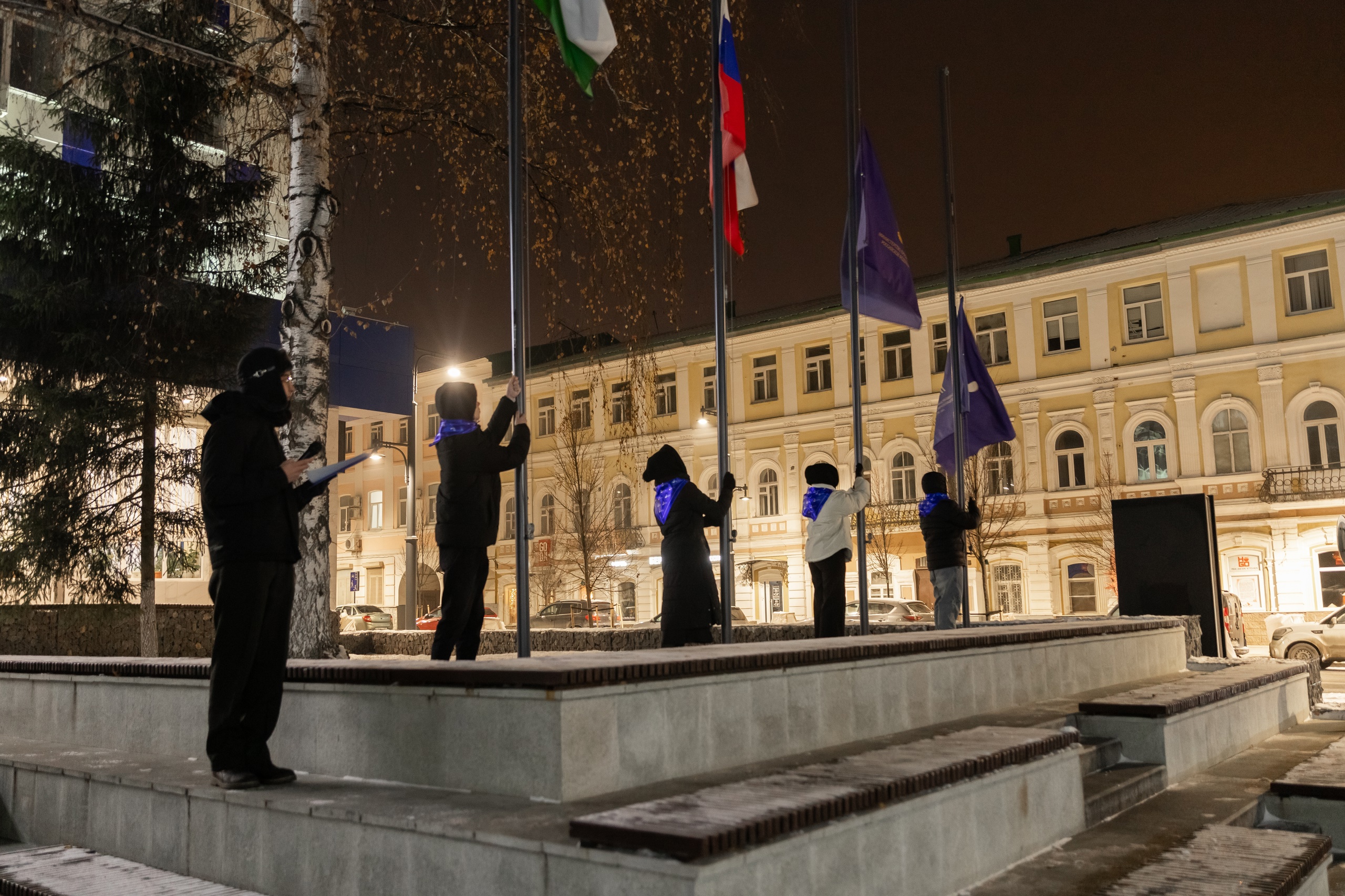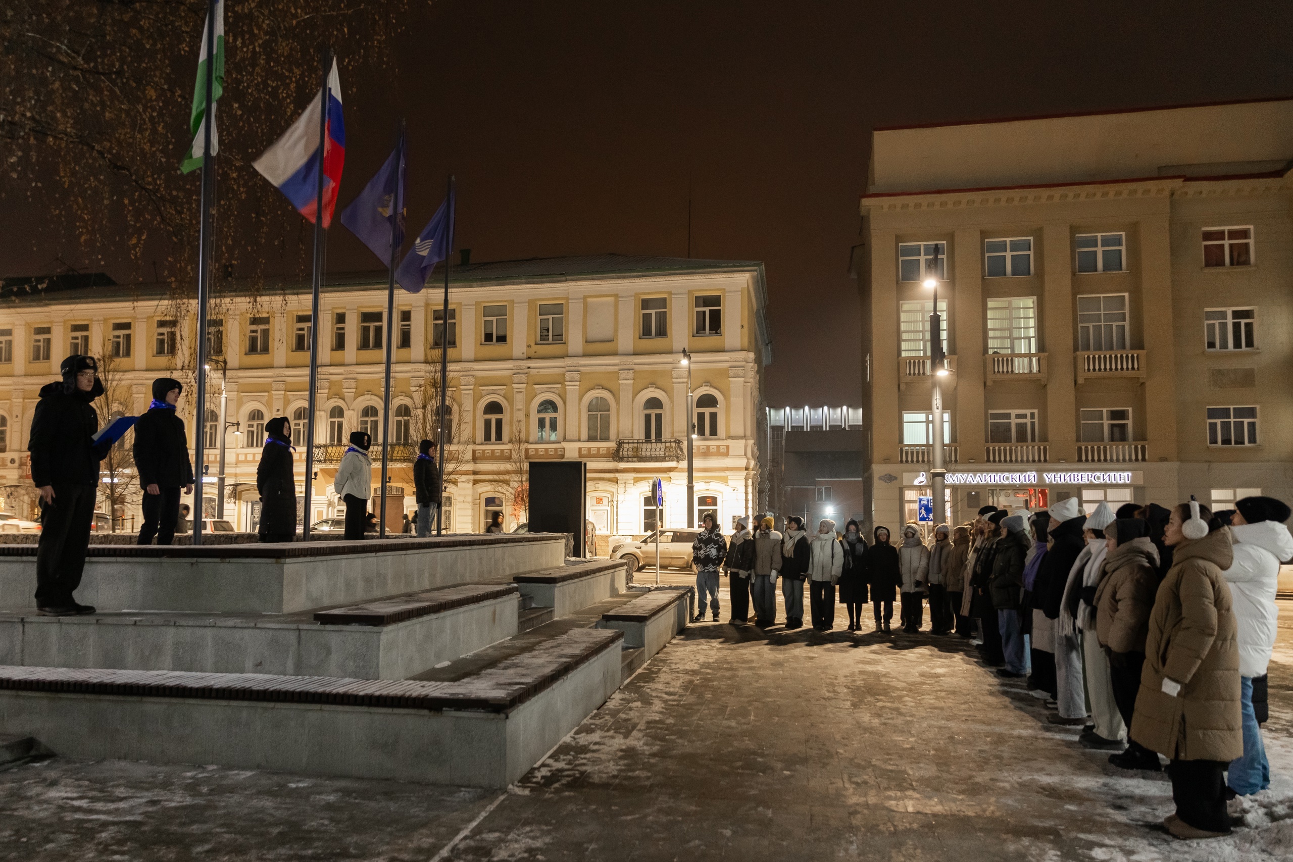9 декабря на площади перед Акмуллинским университетом состоялась традиционная торжественная церемония поднятия государственных флагов Российской Федерации, Республики Башкортостан, флагов Министерства просвещения Российской Федерации и Акмуллинского университета. В ней приняли участие студенты и преподаватели колледжа БГПУ имени М. Акмуллы.
