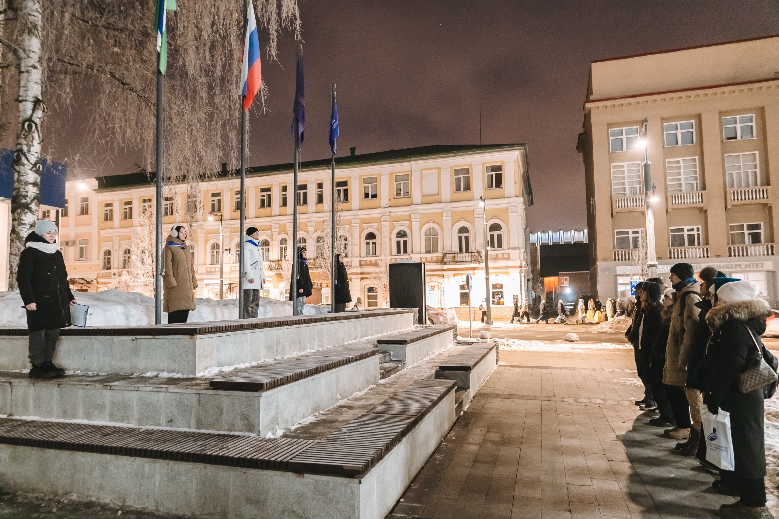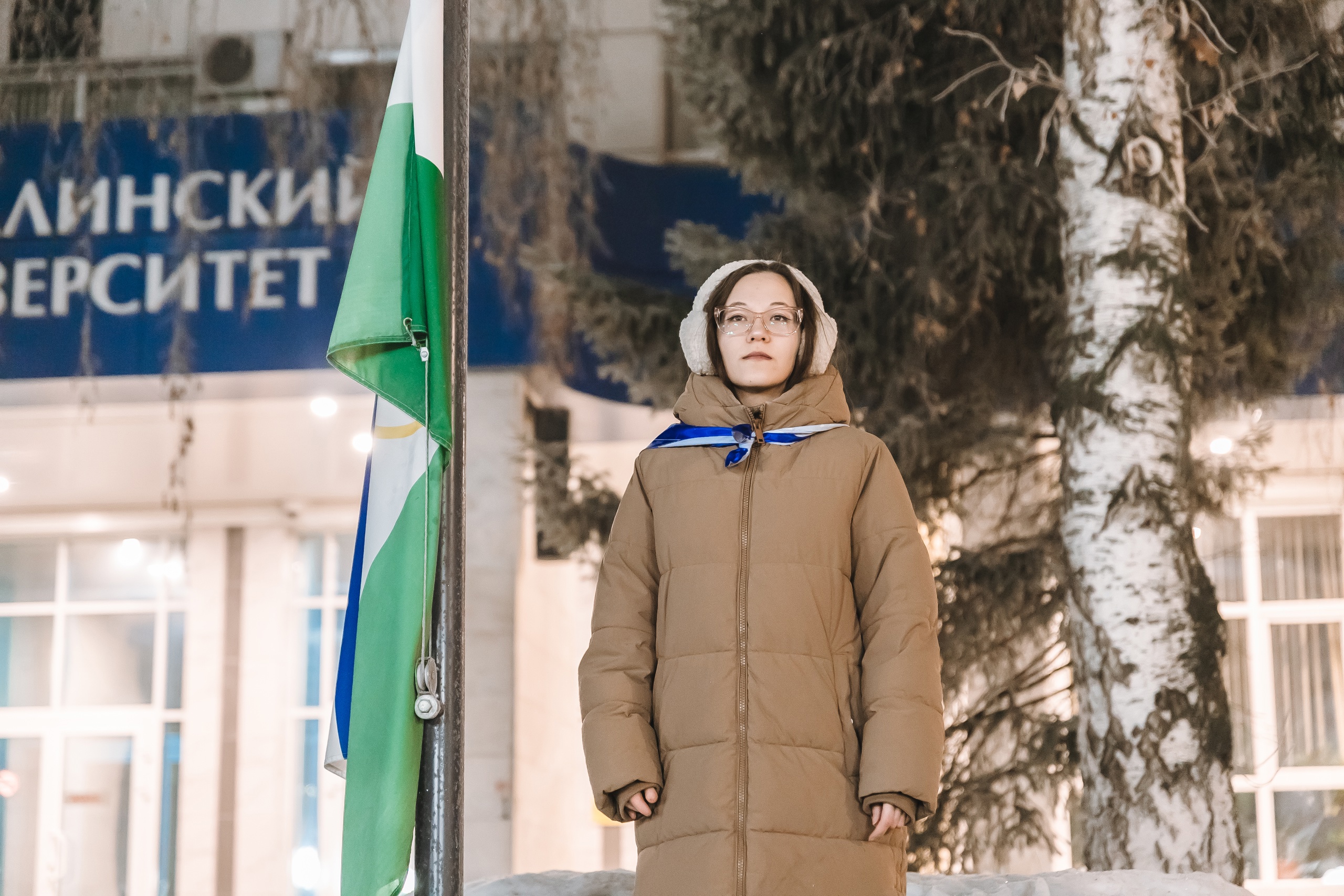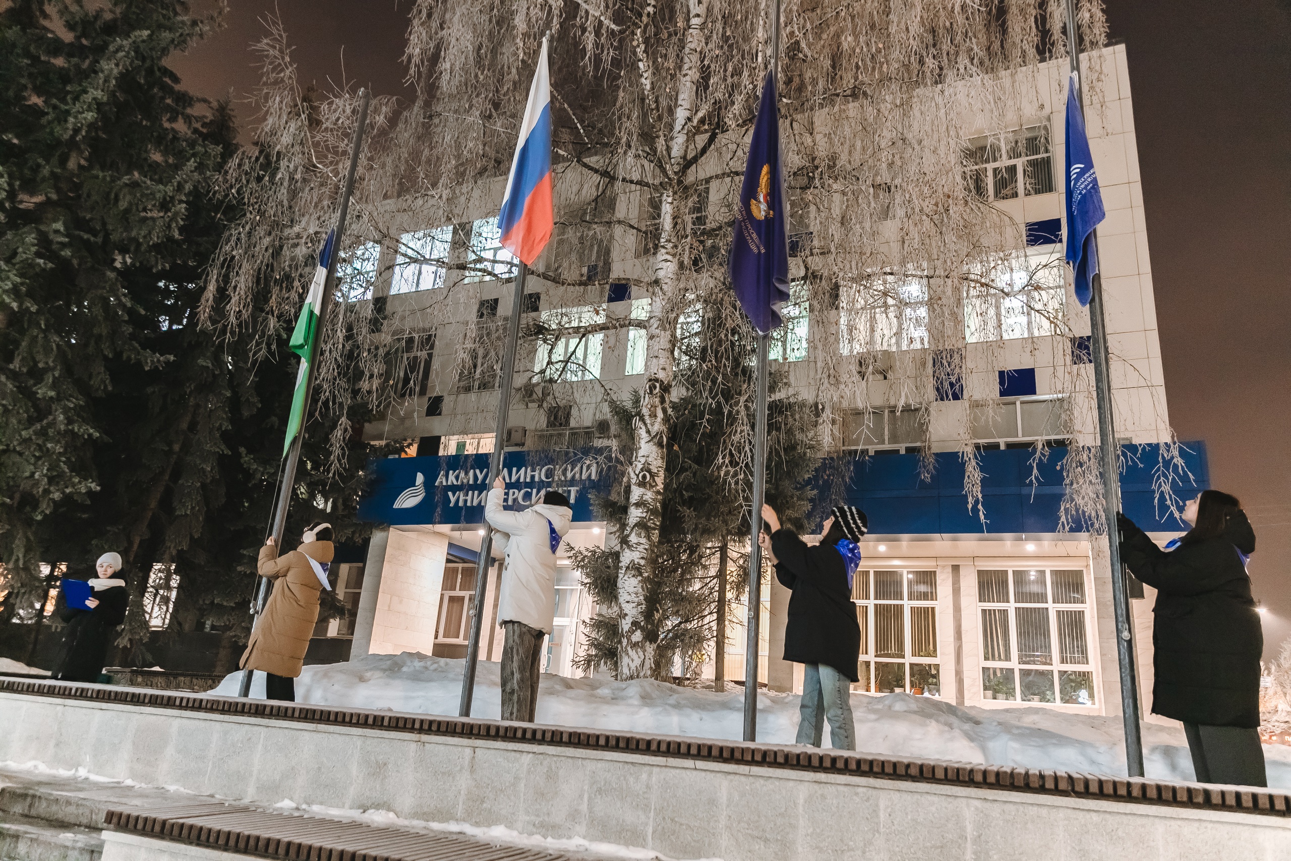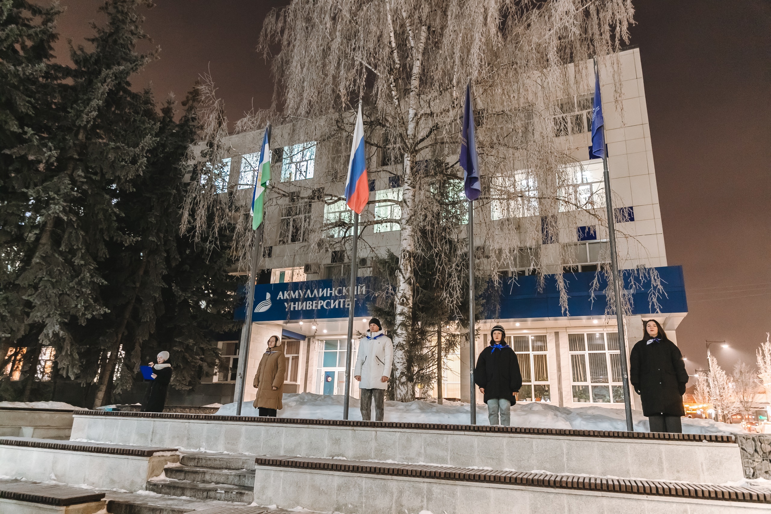 10 февраля в БГПУ им. М. Акмуллы прошла еженедельная торжественная церемония поднятия государственных флагов Российской Федерации, Республики Башкортостан, флагов Министерства просвещения Российской Федерации и Акмуллинского университета. В ней приняли участие студенты и преподаватели Института физики, математики, цифровых и нанотехнологий.