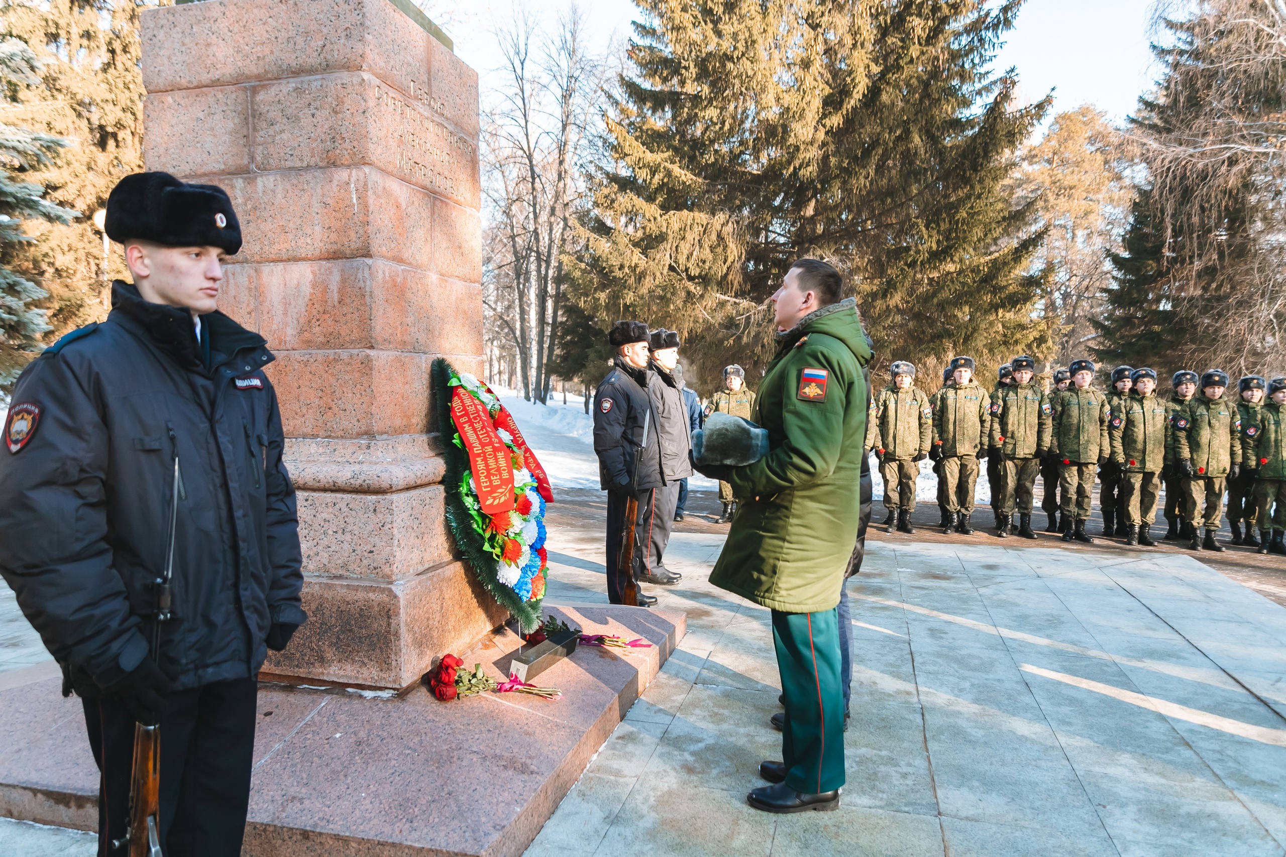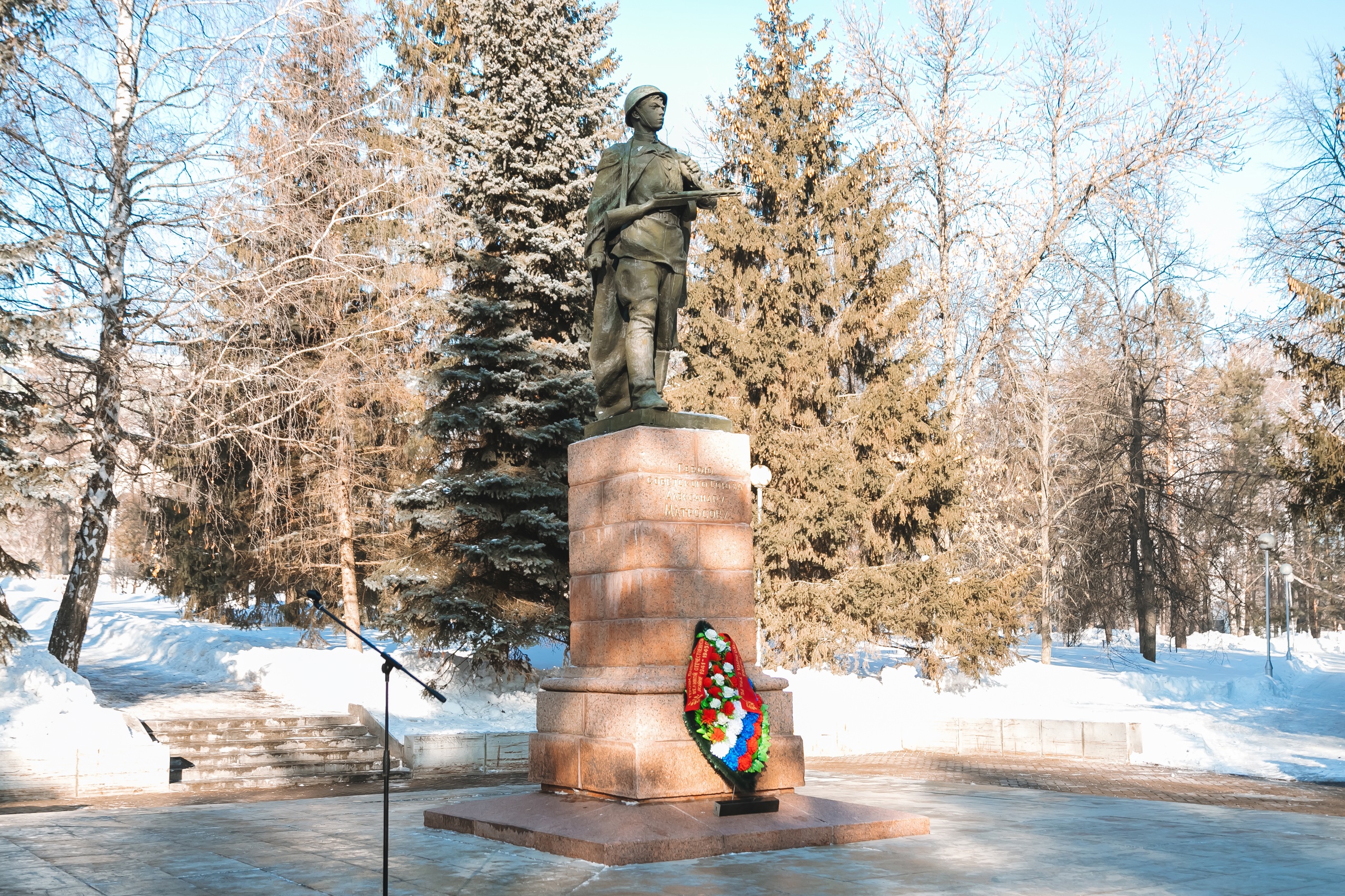 21 февраля в парке им. В.И. Ленина состоялась торжественная церемония возложения цветов к памятнику Герою Советского Союза Александру Матросову и митинг, посвященный Дню защитника Отечества. В мероприятии приняли участие студенты уфимских вузов, шаймуратовцы и юнармейцы школ Кировского района Уфы, ветераны, участники СВО и почетные гости.