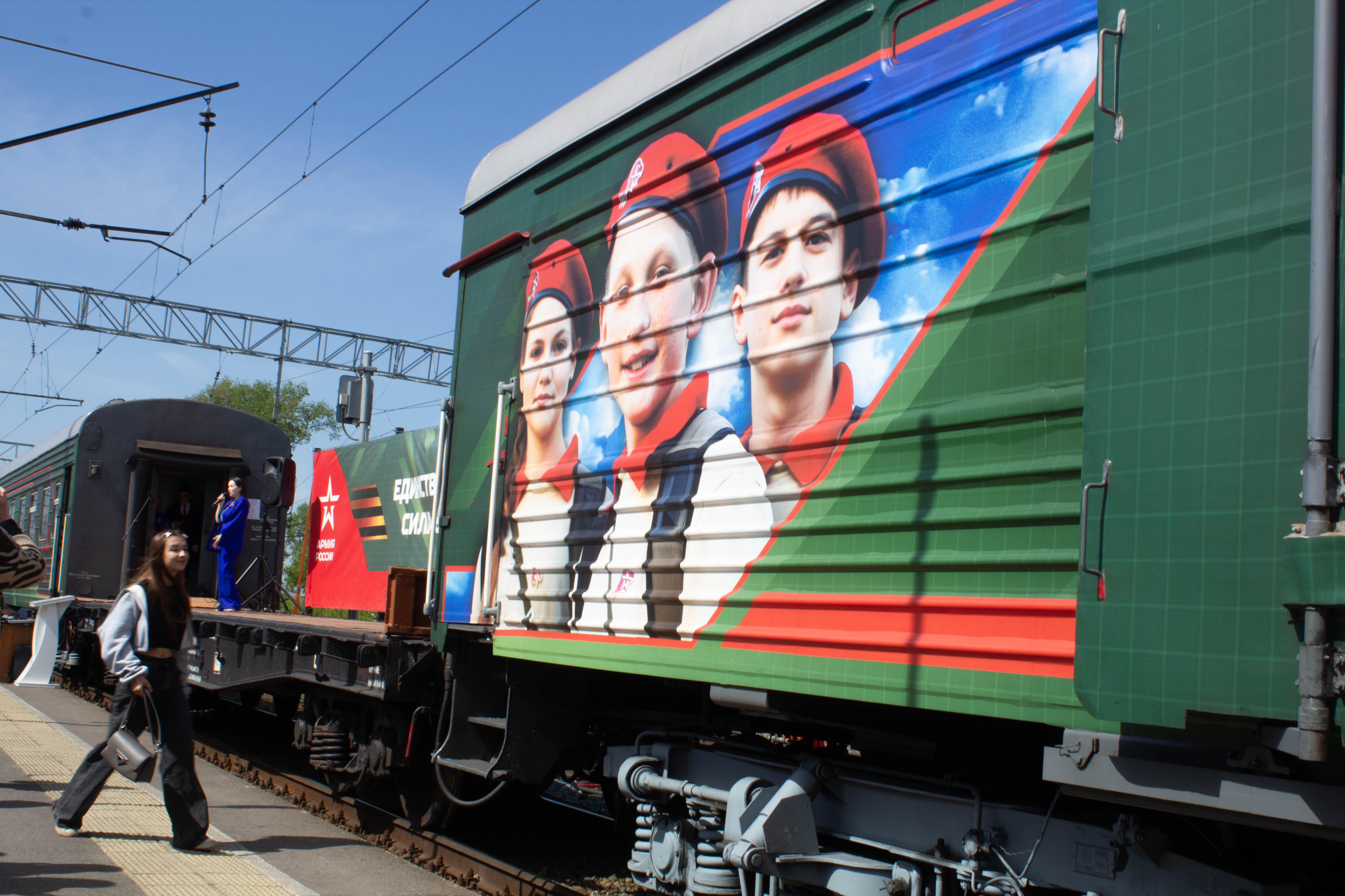 Прибытие агитпоезда сопровождалось особой атмосферой: участников встречи тепло приветствовали ветераны, представители военно-патриотических организаций, кадеты и члены Юнармии. Торжественную атмосферу мероприятия подчеркнул эмоциональный концерт, наполненный патриотическими песнями и выступлениями творческих коллективов.