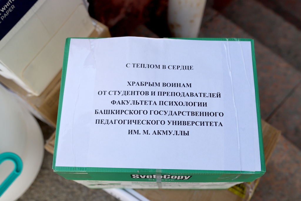 Собранные посылки переданы в администрацию Кировского района Уфы для централизованной отправки в зону специальной военной операции.