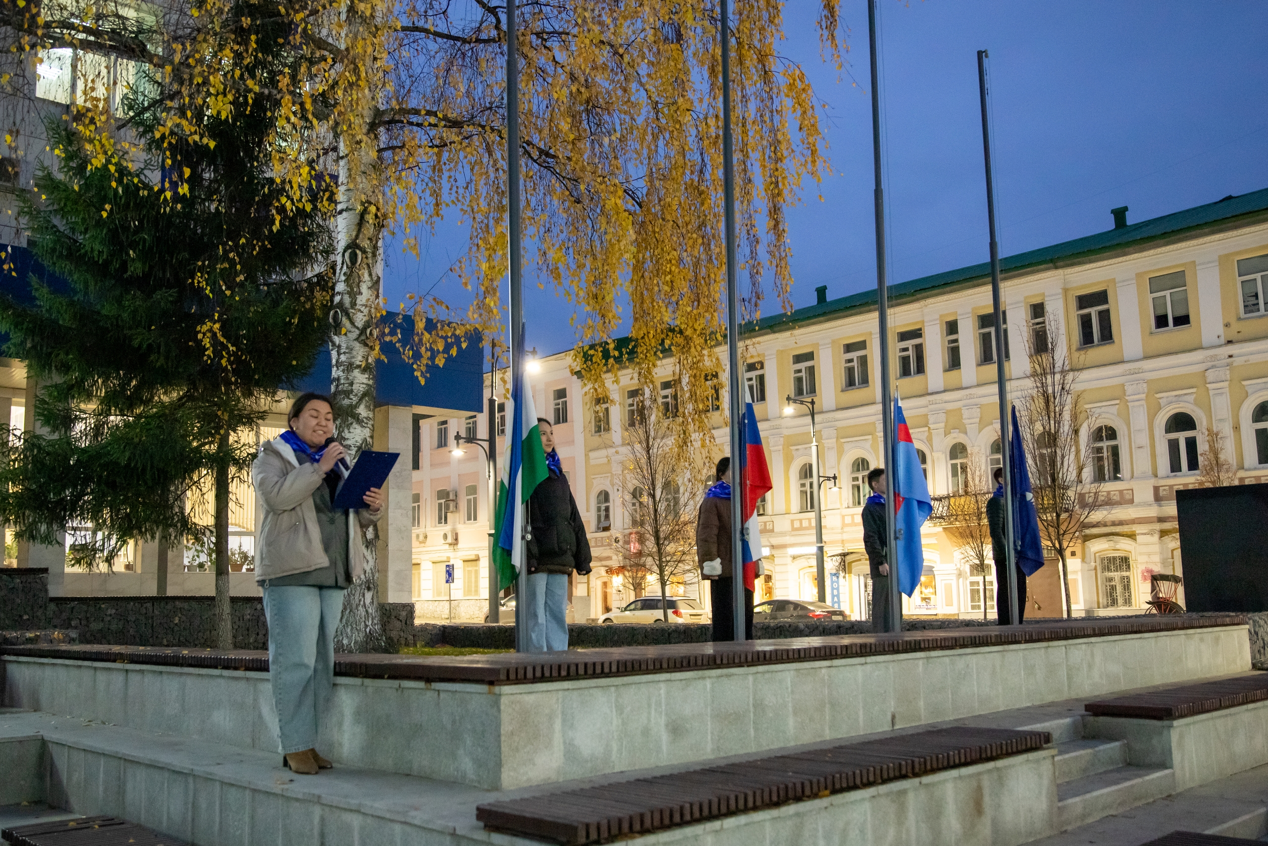 Студенты факультета башкирской филологии подняли флаги перед БГПУ им. М. Акмуллы