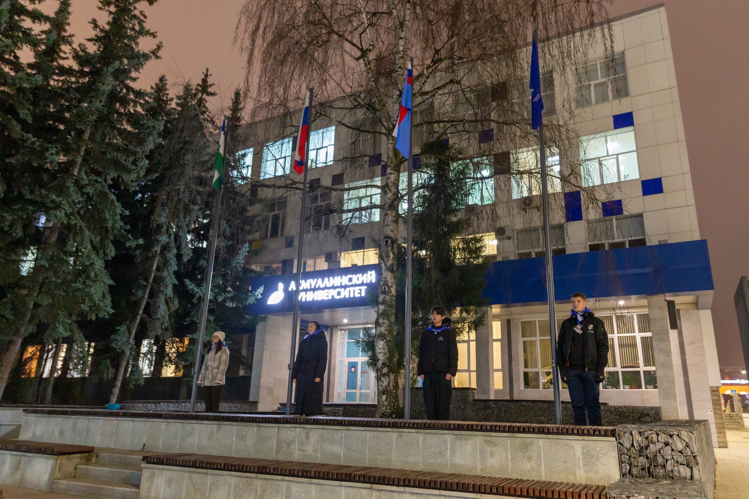 24 ноября в БГПУ им. М. Акмуллы состоялась еженедельная торжественная церемония поднятия государственных флагов Российской Федерации, Республики Башкортостан, флагов Министерства просвещения России и Акмуллинского университета. В ней приняли участие студенты и преподаватели Института исторического, правового и социально-гуманитарного образования.