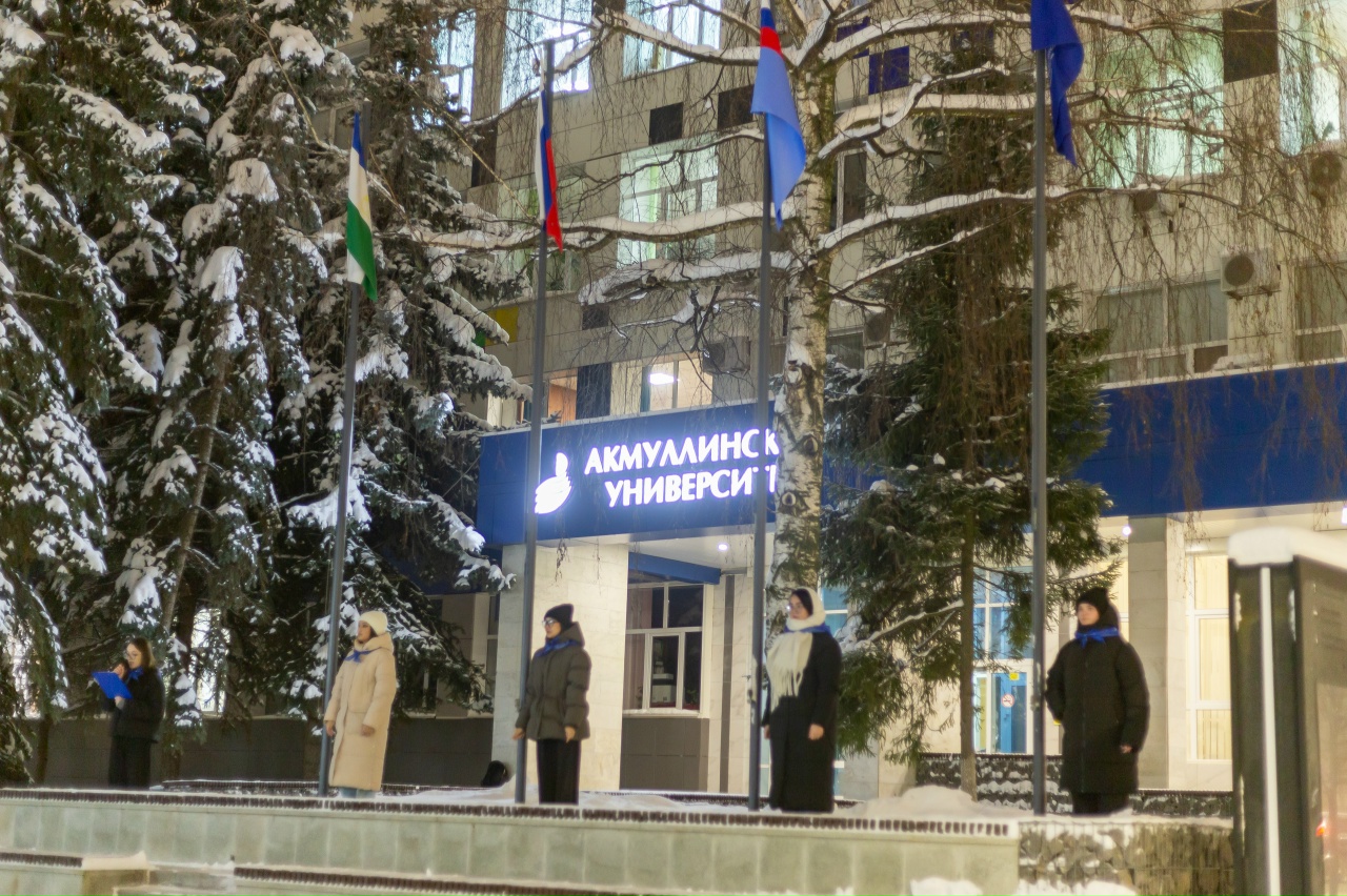По традиции утро понедельника в БГПУ имени М. Акмуллы началось с торжественного поднятия государственных флагов Российской Федерации, Республики Башкортостан, флагов Министерства просвещения РФ и Акмуллинского университета. В церемонии приняли участие студенты и преподаватели факультета башкирской филологии.