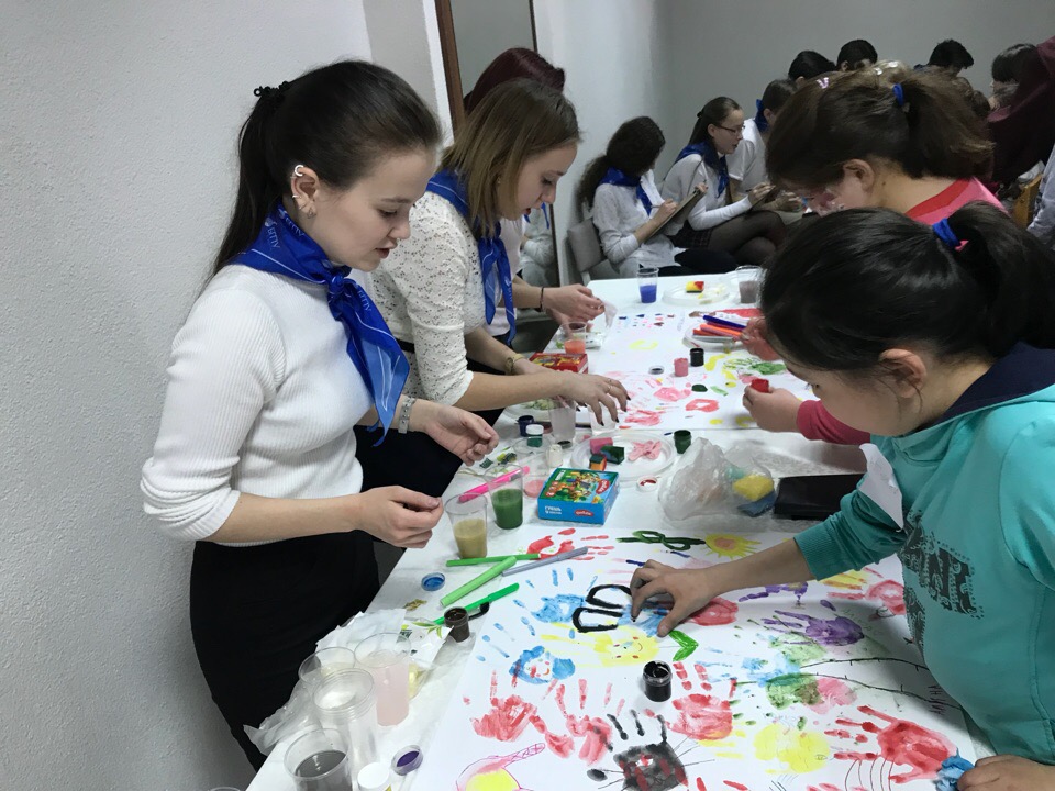 Волонтеры запустили работу нескольких площадок с мастер-классами, аквагримом и рисованием портретов, которые можно было забрать на память.