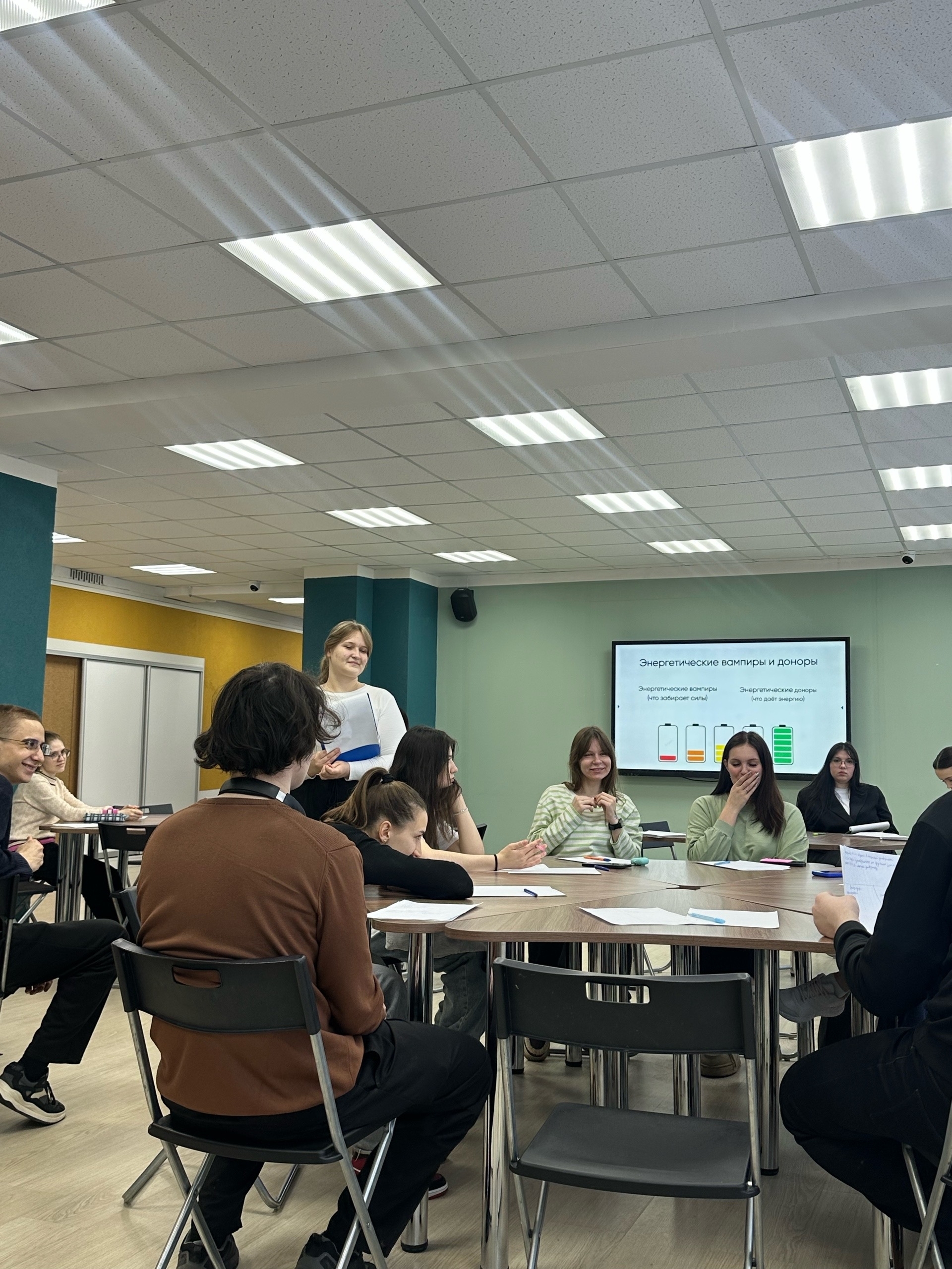 Следующий тренинг "Профилактика эмоционального выгорания"  прошел с участием студентов Института физики, математики, цифровых и нанотехнологий и был направлен на определение признаков выгорания, выработки умения распознавать его симптомы и освоение эффективных техник саморегуляции.