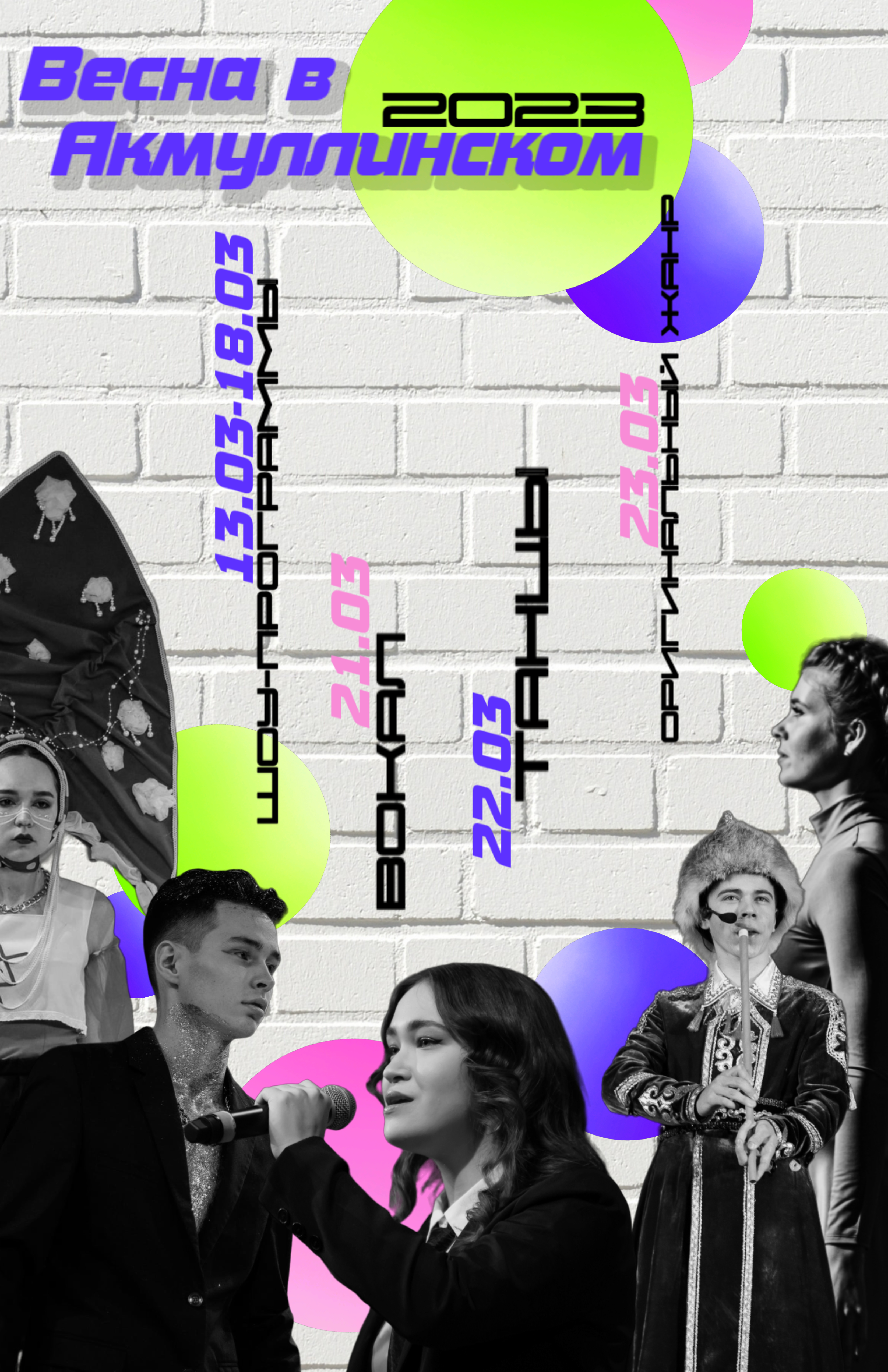 13 марта в Концертном зале БГПУ им. М. Акмуллы стартует фестиваль «Студенческая весна – 2023». Фестиваль пройдет по конкурсным номинациям: шоу-программа, вокал, танцы, оригинальный жанр.