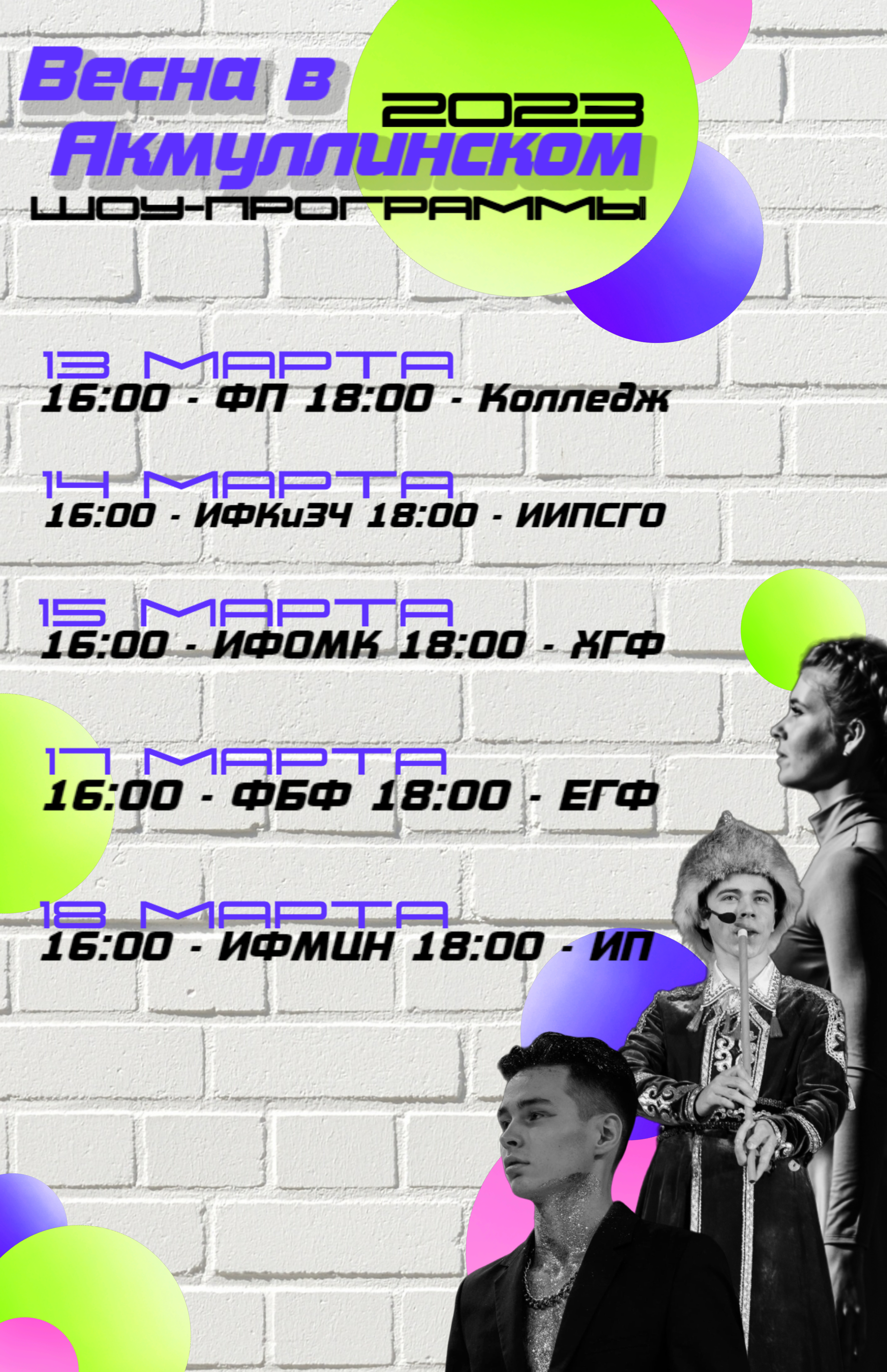 С 13 по 18 марта студенты факультетов, институтов и колледжа Акмуллинского университета представят свои шоу-программы.