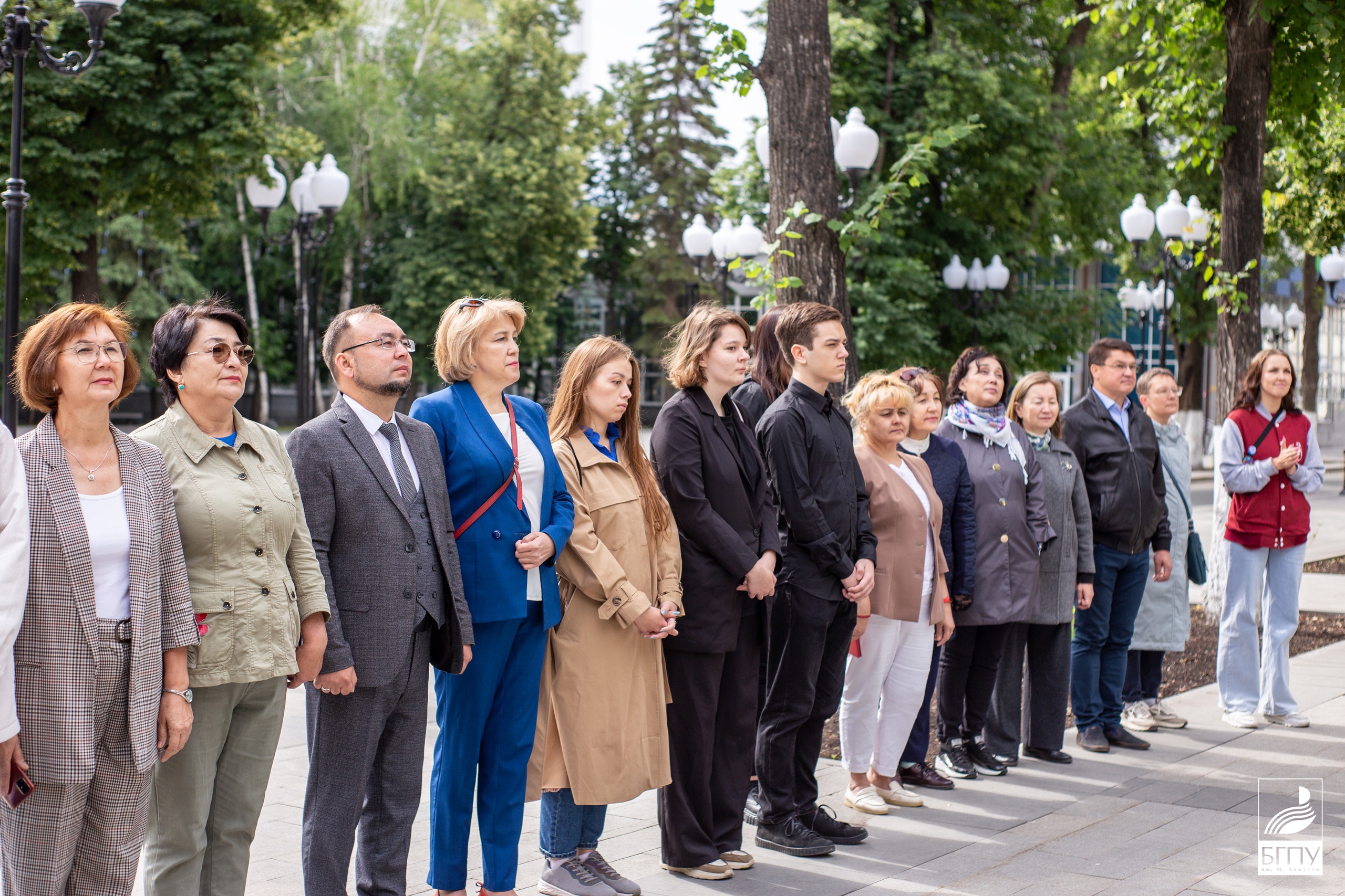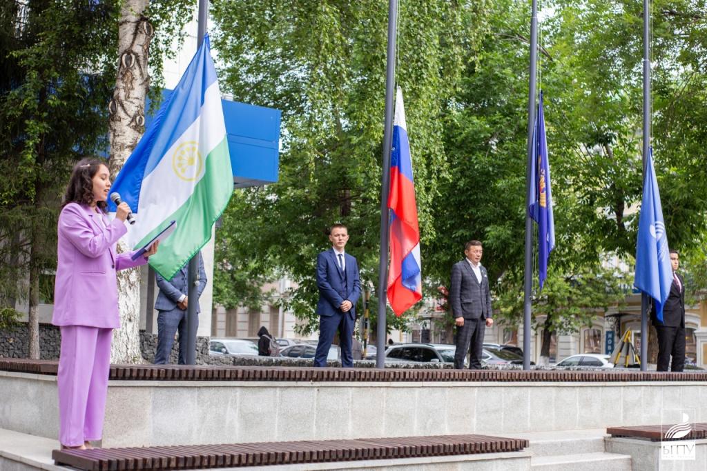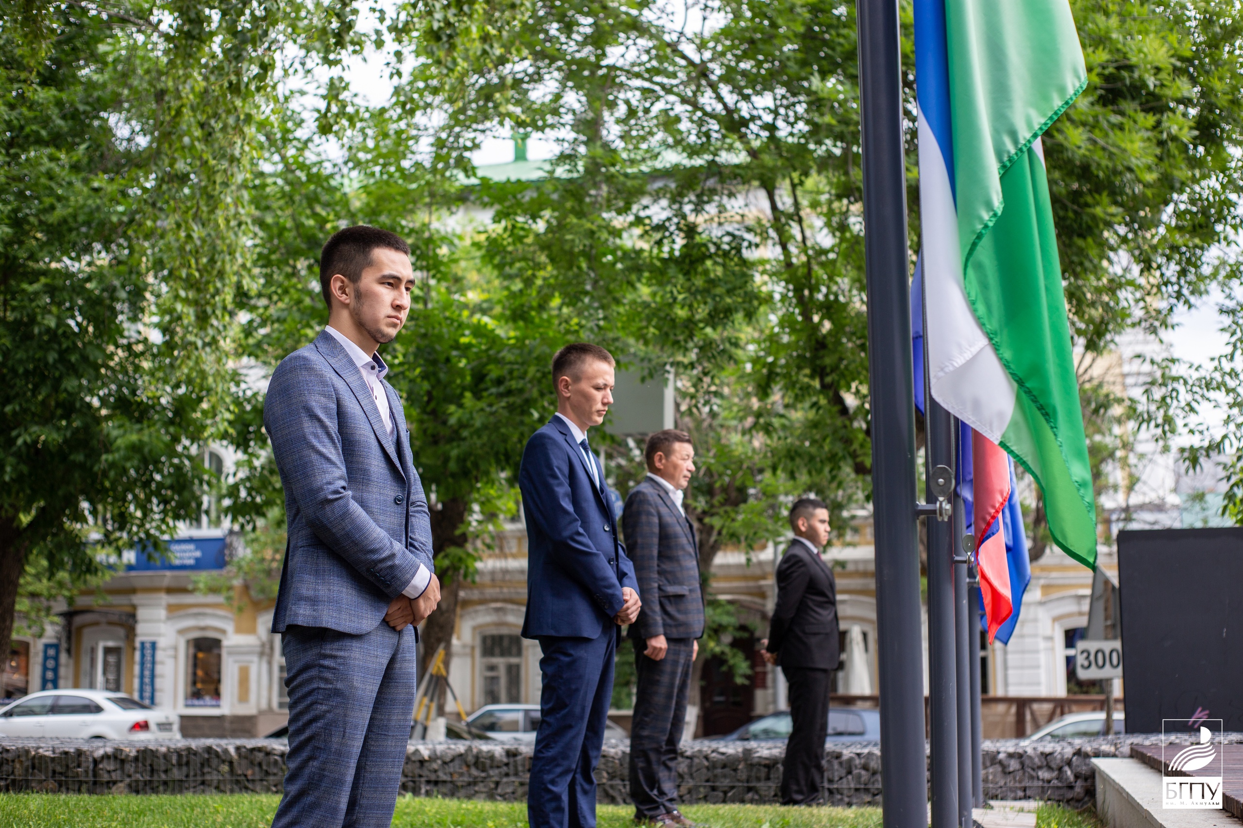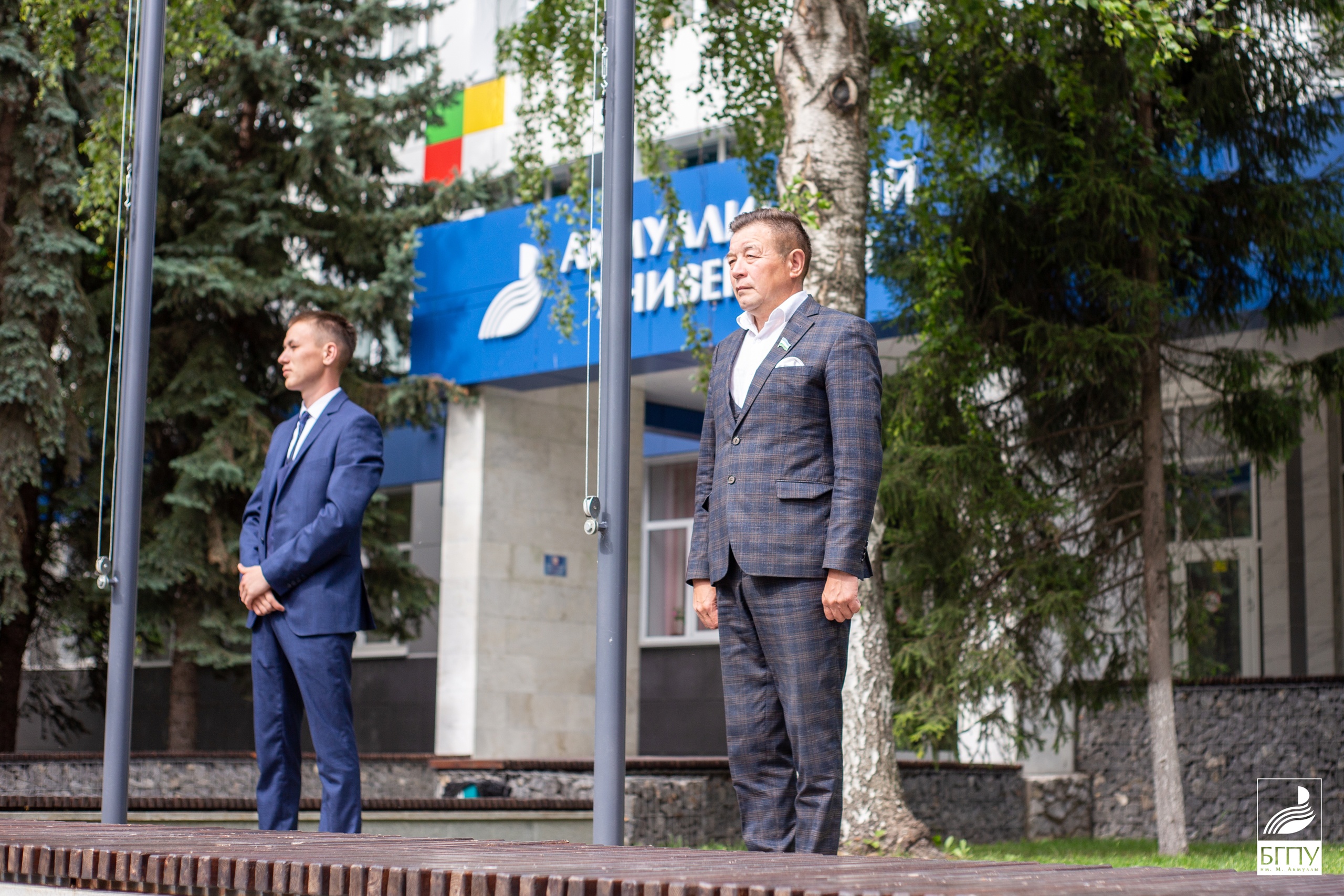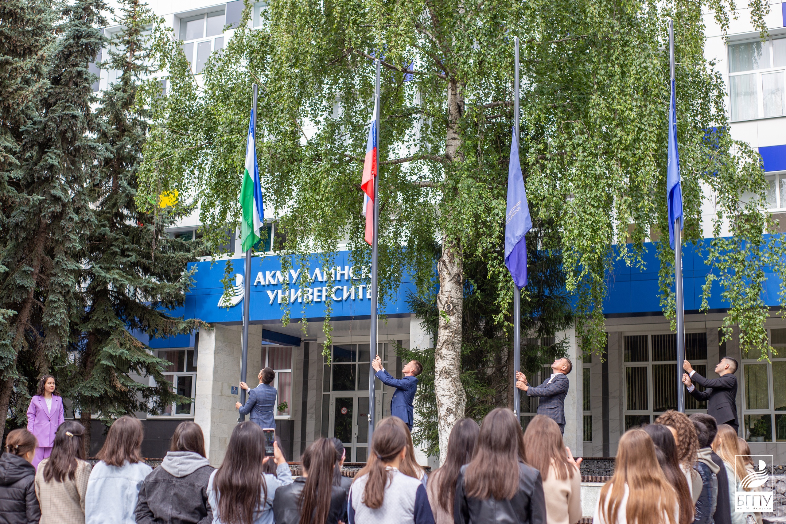 12 июня в Акмуллинском университете состоялась торжественная церемония поднятия государственного флага Российской Федерации и флагов Республики Башкортостан, Министерства просвещения России и БГПУ имени М.Акмуллы. В ней приняли участие студенты и преподаватели факультета башкирской филологии.