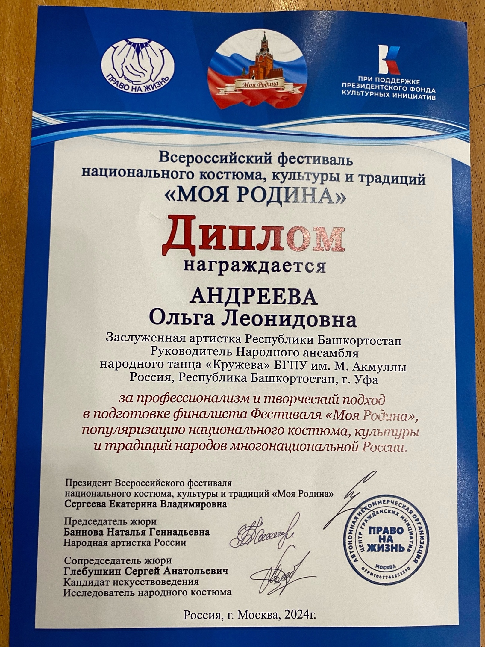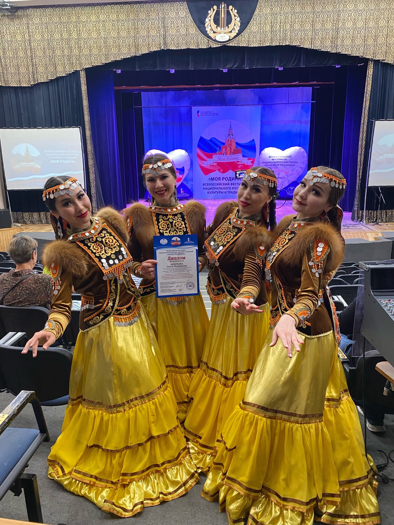 В Москве состоялся финал Всероссийского фестиваля национального костюма, культуры и традиций «Моя Родина». Он проходил сцене Национального театра народной музыки и песни «Золотое кольцо» при поддержке Президентского фонда культурных инициатив.