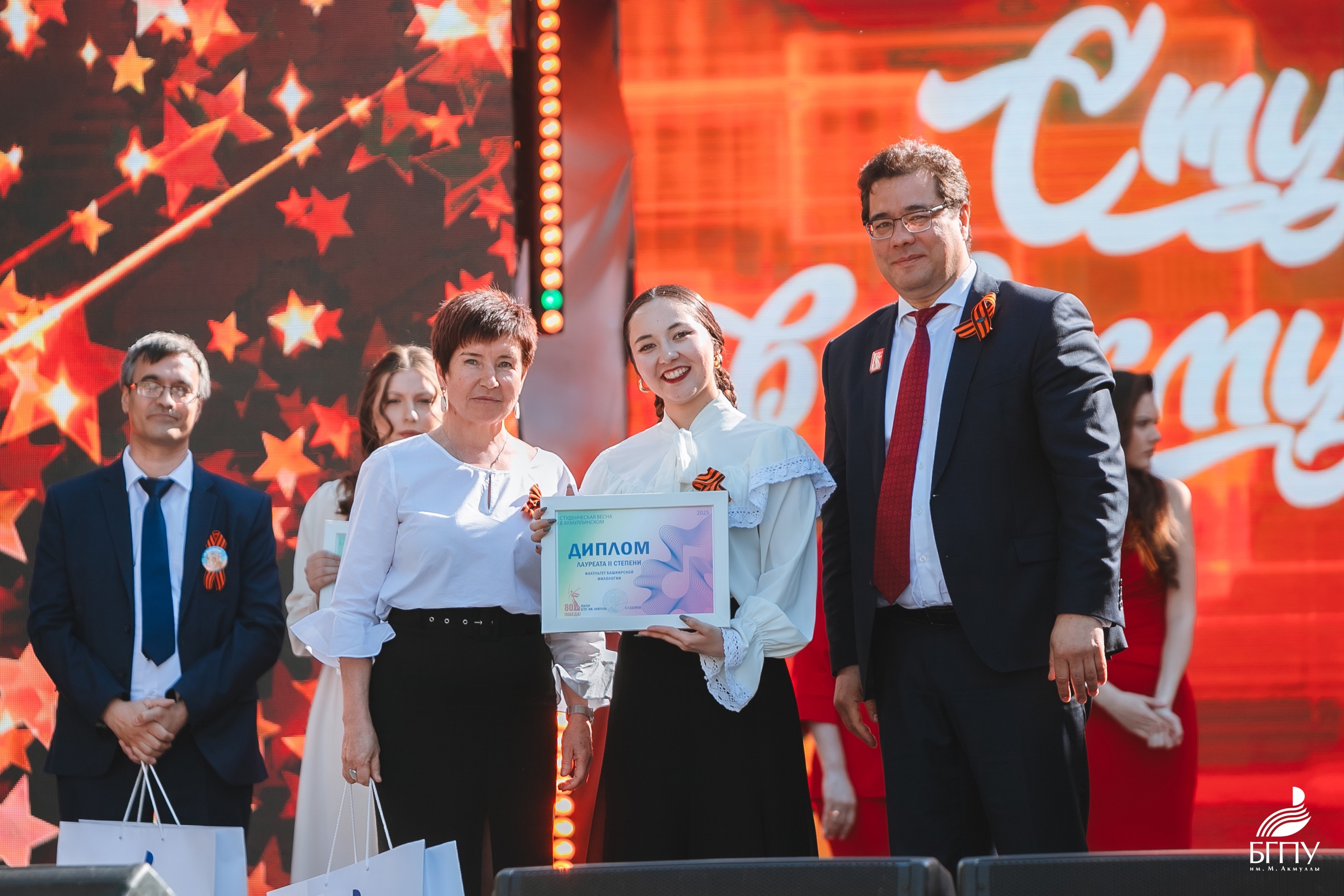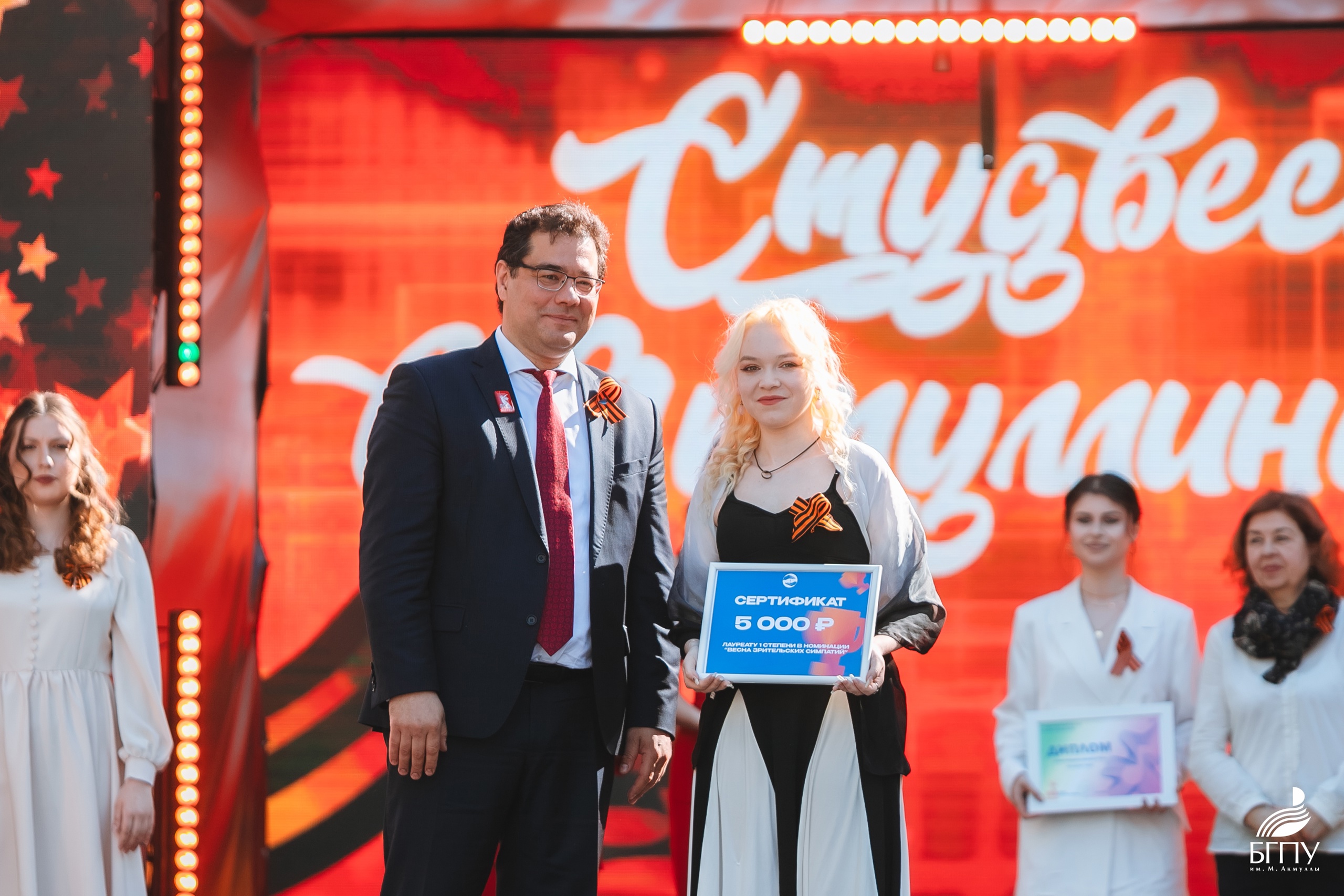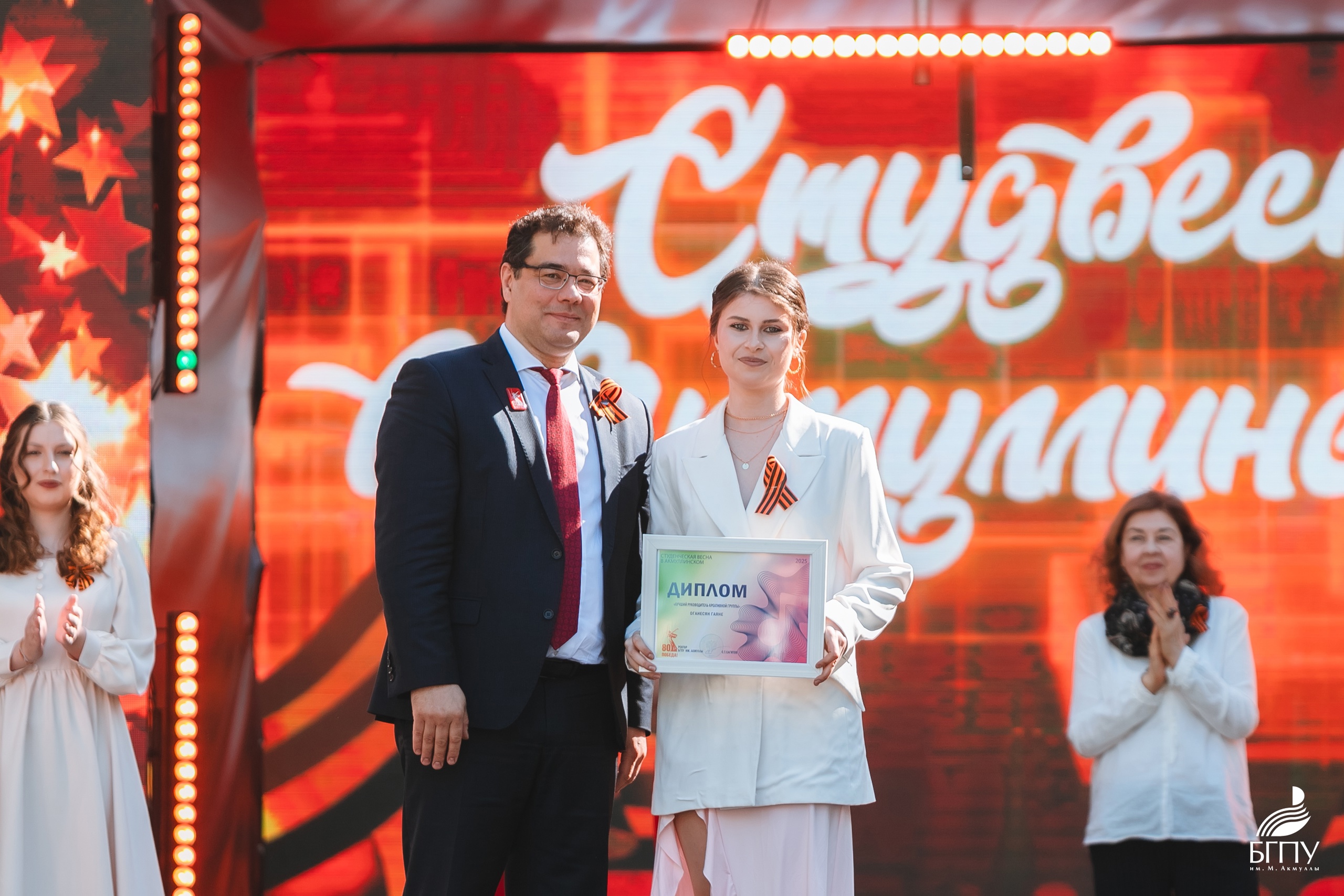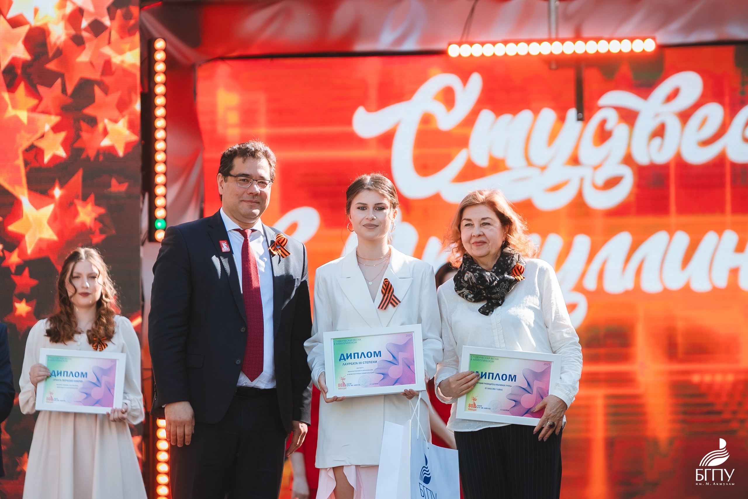 6 мая на торжественном мероприятии, посвященном 80-летию Победы в Великой Отечественной войне, были подведены итоги фестиваля студенческого творчества «Студенческая весна в Акмуллинском – Весна Победы».