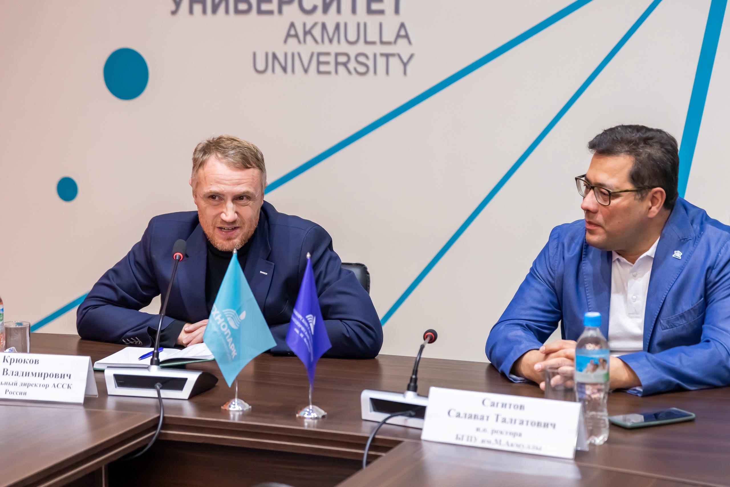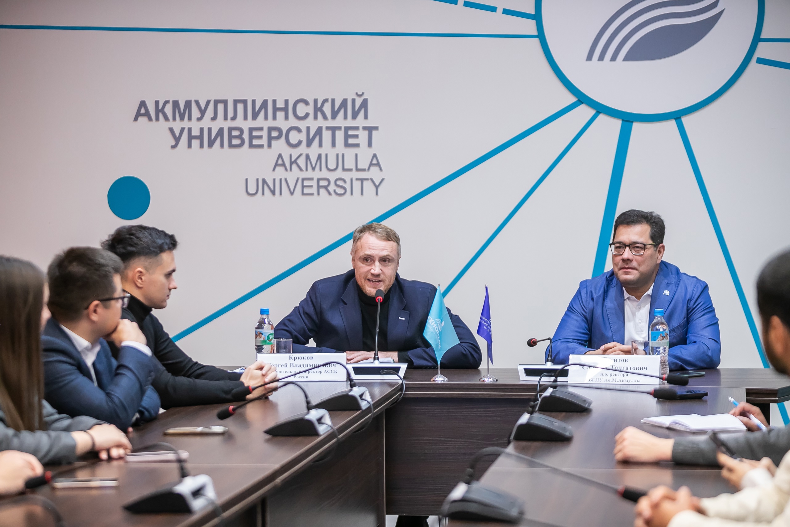 16 октября в Акмуллинском университете состоялась встреча с руководителями Ассоциации студенческих спортивных клубов России. К активистам студенческого спорта Башкортостана пришли председатель ассоциации, боец смешанных единоборств Владимир Минеев и  исполнительный директор организации, член комиссии Государственного Совета России по направлению «Физическая культура и спорт» Сергей Крюков. Они приехали в Уфу для участия в XII Международном форуме «Россия – спортивная держава».